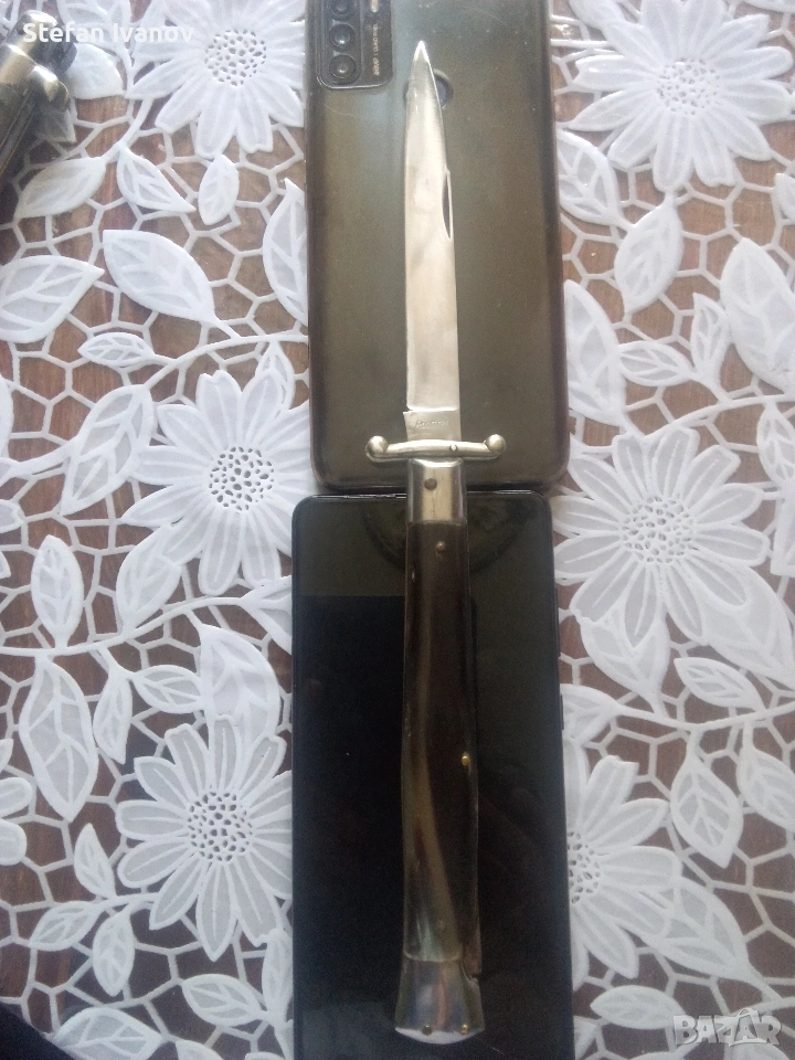 Италиански нож стилето 33 см ,здрав механизъм,рогови чирени с красива шарка ,произведен в Италия Подходящ за ценители на класически ножове