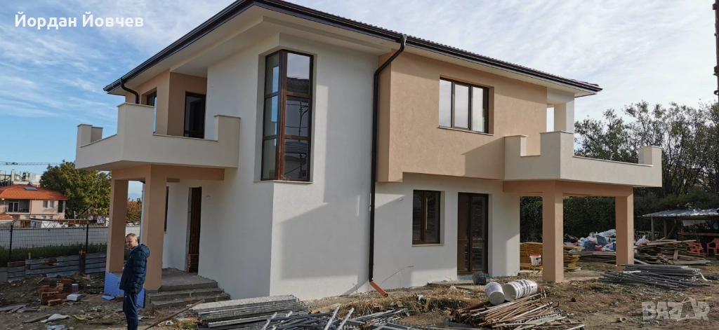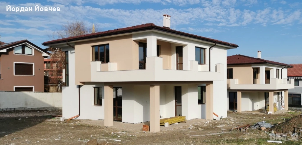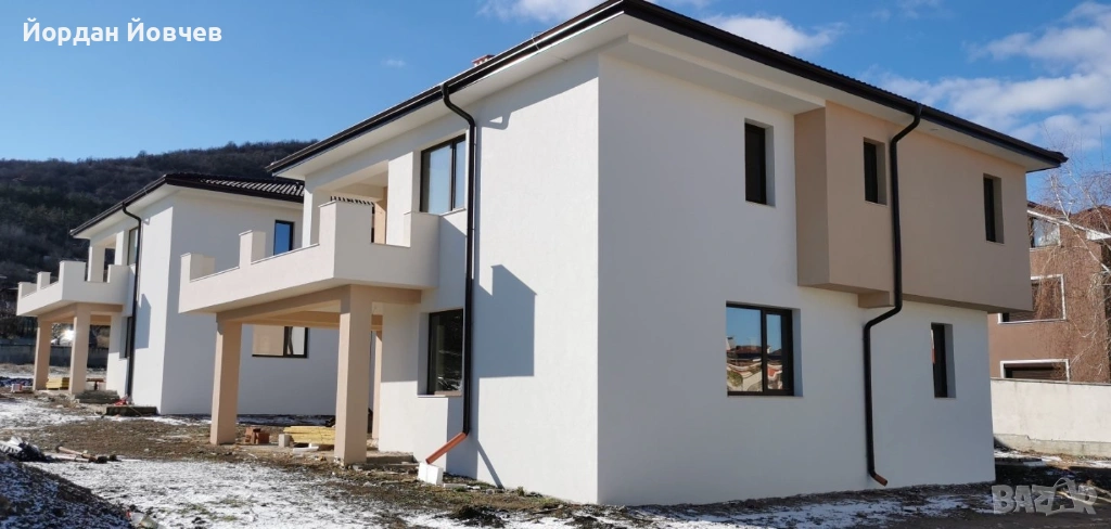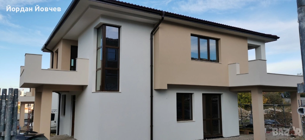 Строеж 2025г., Акт 15, Две къщи, 2 етажа, общо 4 спални, 3 бани с WC, ток с партида, изградена ел. инсталация, вода с партида, изградена ВиК инсталация, дограма-троен стъклопакет ' Кьомерлинг ', външна изолация, вътрешна мазилка, готова за боя. Продажба от собственик. Три паркоместа, самостоятелен парцел 600 кв. плюс 80кв. път