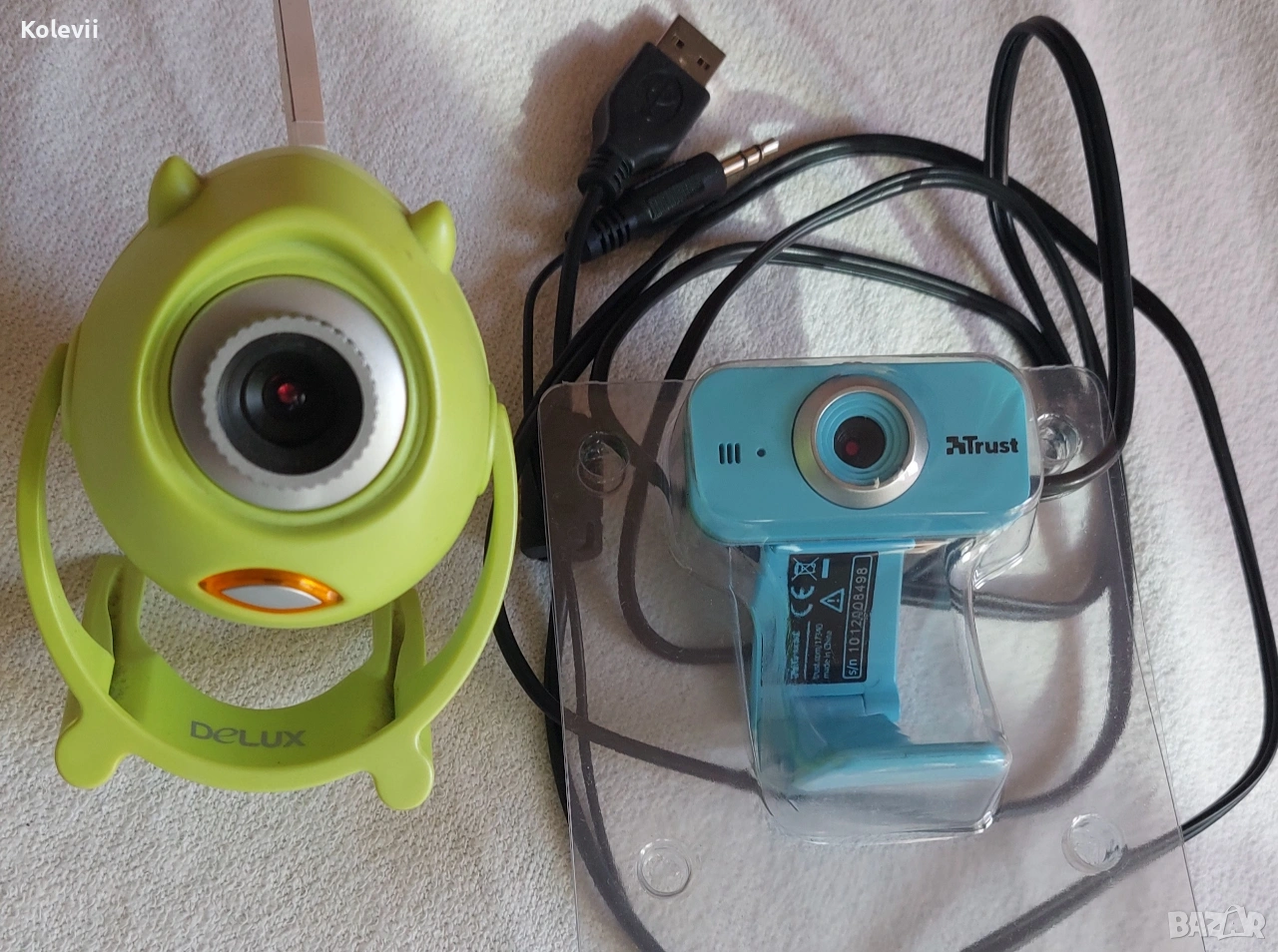 Камери за компютър, светло синята Trust е чисто нова. Зелената Delux е ползвана броени часове и няма кабел. Цената за двете е 14 €.