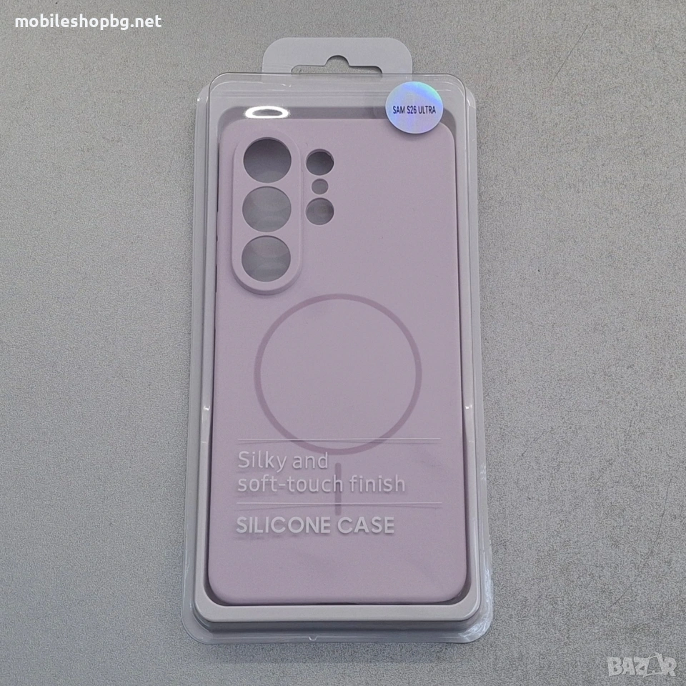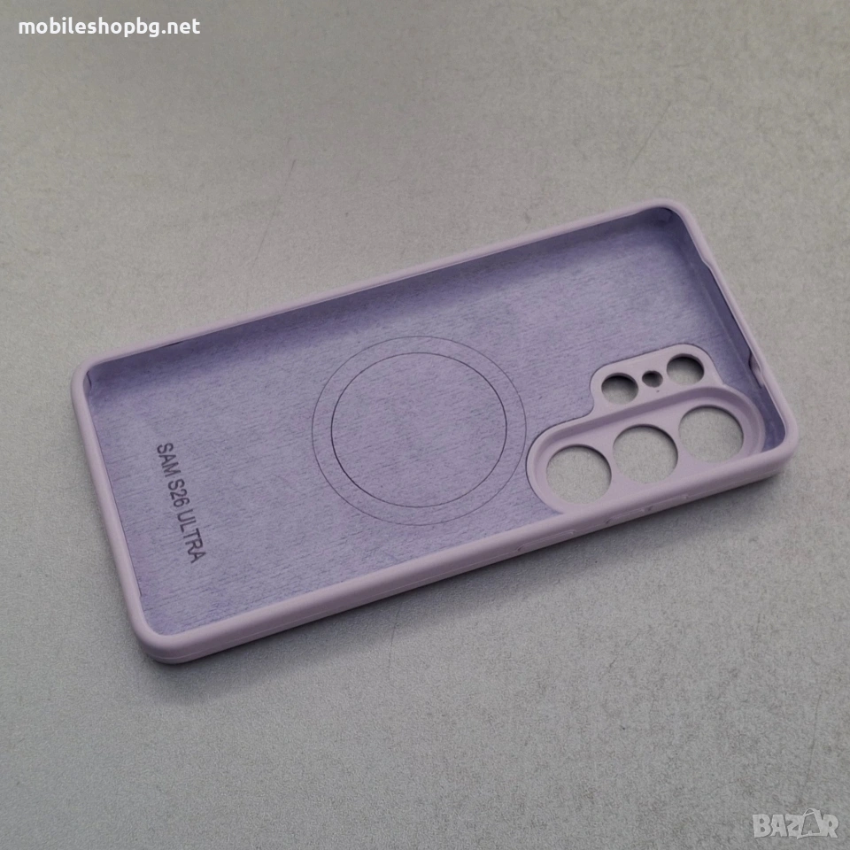 Кейс за Samsung Galaxy S26 Ultra. Лилав цвят, MagSafe, защита на камерите, подплатен отвътре силикон. Много приятен на допир.