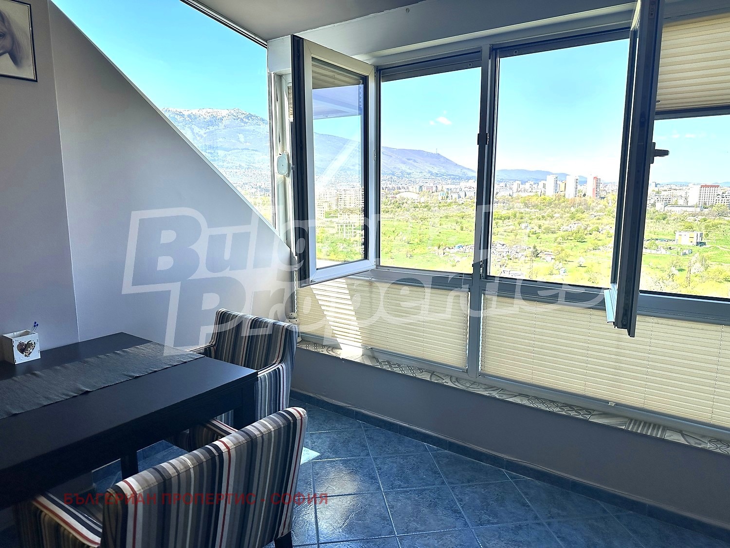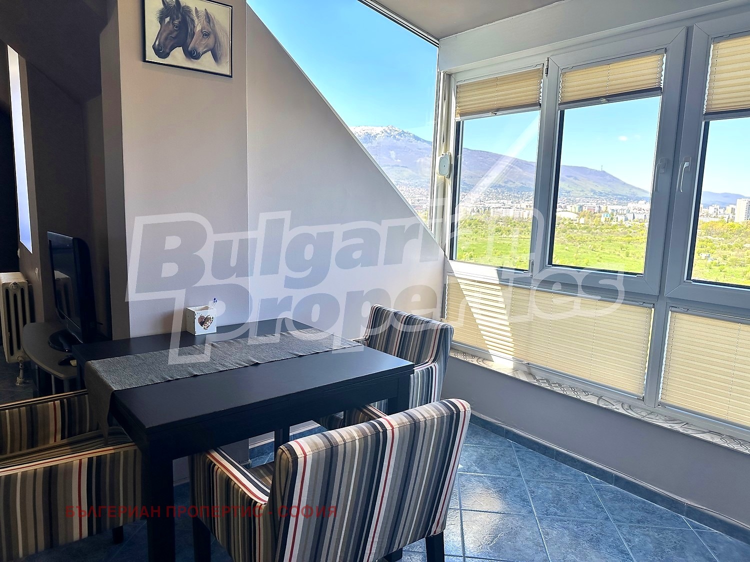 Жилището впечатлява с просторна дневна зона, самостоятелна спалня с остъклен балкон и баня с тоалетна. Апартаментът е със североизточно изложение и предлага открита и приятна гледка към парк Въртопо и планина Витоша, което създава усещане за простор и близост до природата.