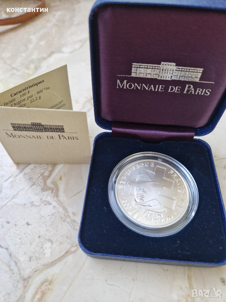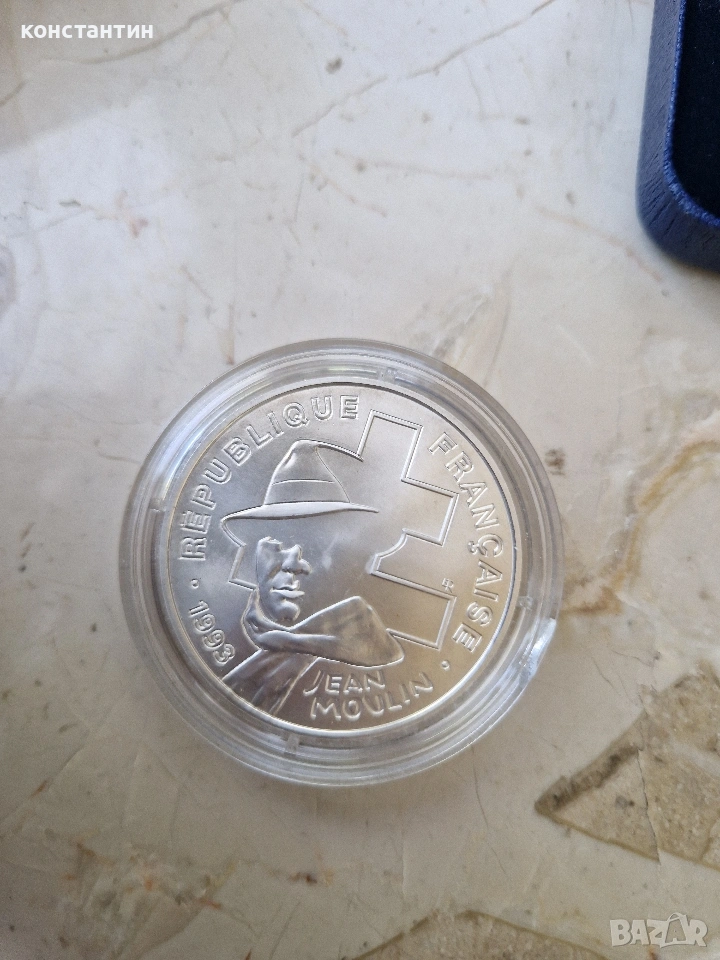 Сребърна UNC монета 100 франка 1993г.Жан Мулен