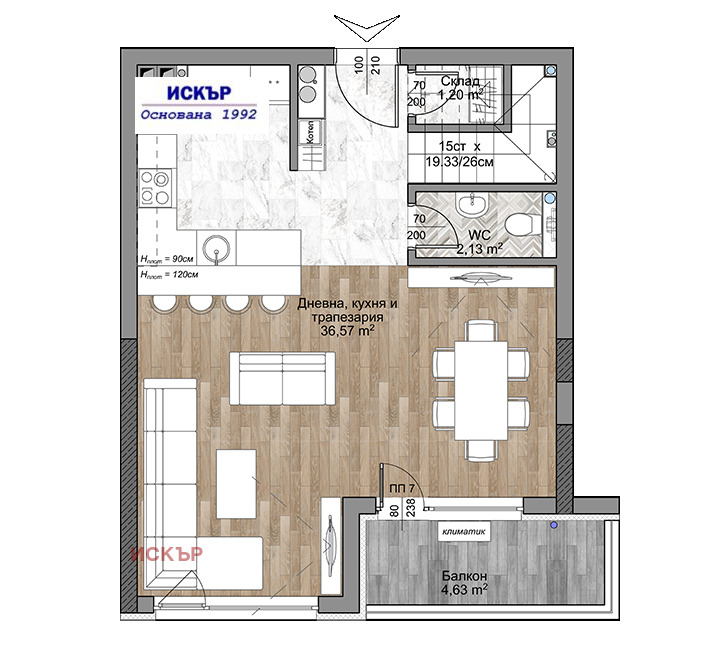 Агенция за недвижими имоти 'Искър' Ви представя просторен и функционален мезонет в ж.к. Младост 4, в непосредствена близост до метростанция Бизнес парк, което осигурява бърз и удобен достъп до централната част на града. Районът е изключително предпочитан за живеене, благодарение на добре развитата инфраструктура, наличието на множество училища, детски градини, спирки на градски транспорт, основни пътни артерии, както и разнообразие от търговски обекти, включително Лидл и Кауфланд.