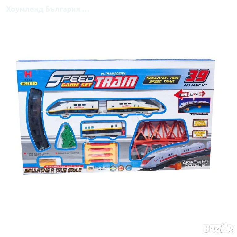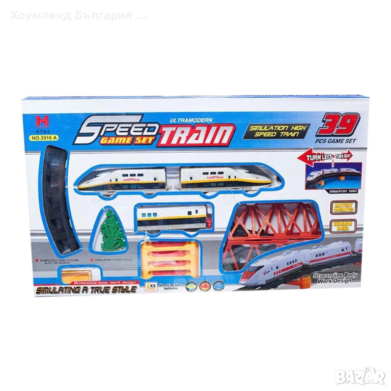 Ефектна играчка за всяко дете. Влак стрела, който се движи много бързо по - релсите и в двете посоки.