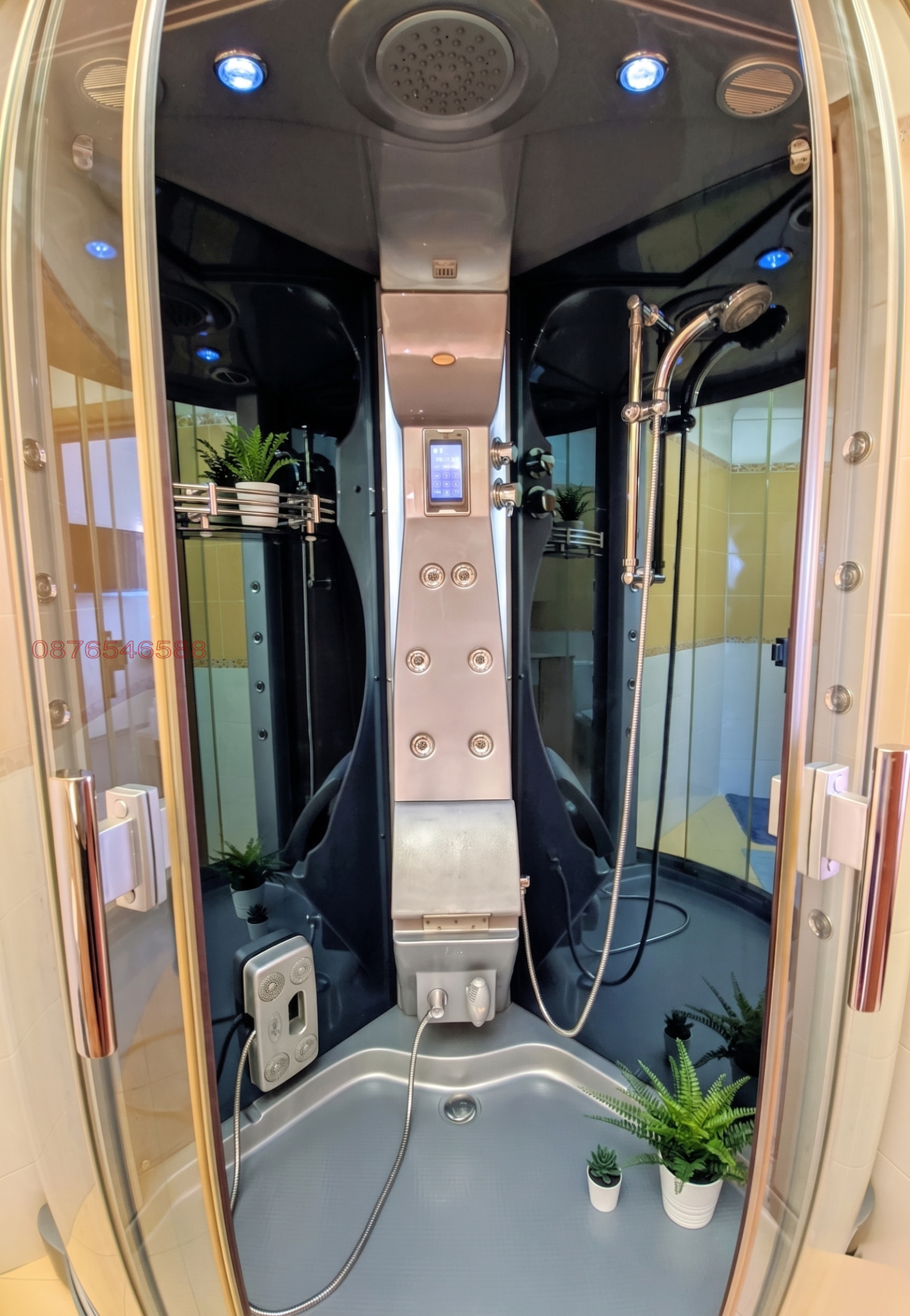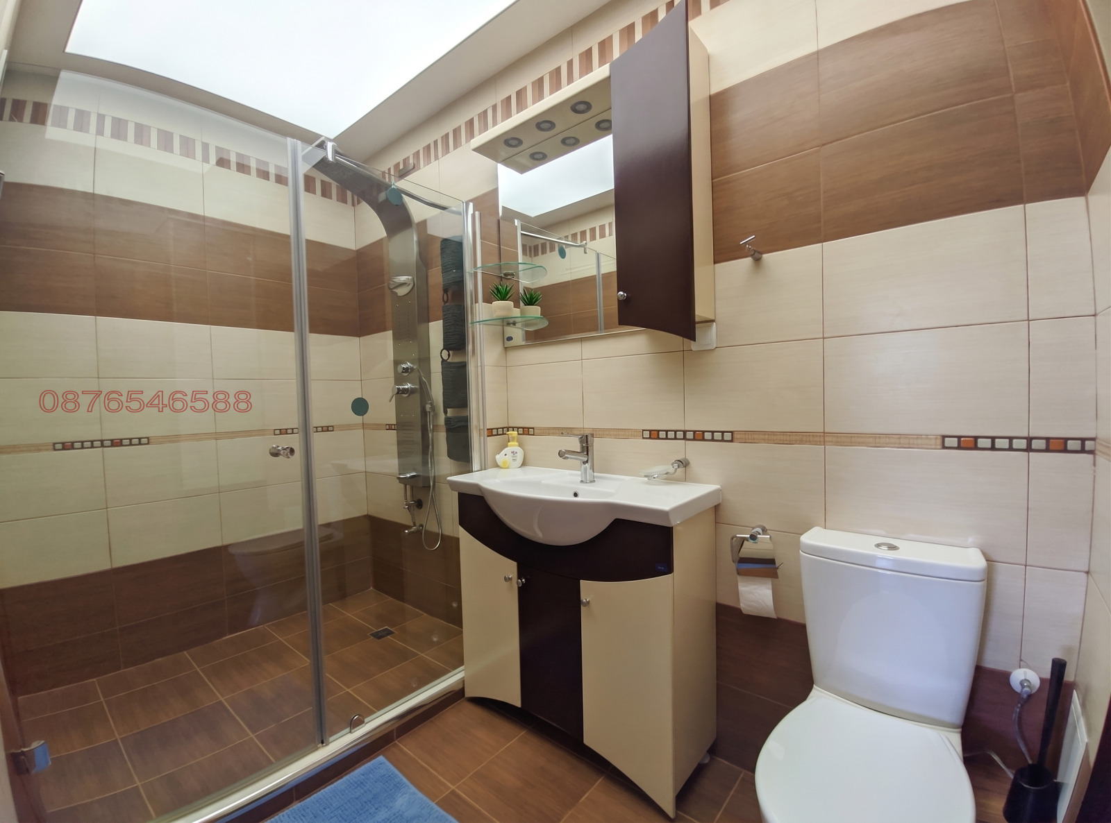 Бани: Две от баните са към спалните. Едната разполага с луксозна душ кабина с хидромасаж и парогенератор (сауна). Третата баня е за гости и в нея е обособено мокро помещение (пералня и сушилня).