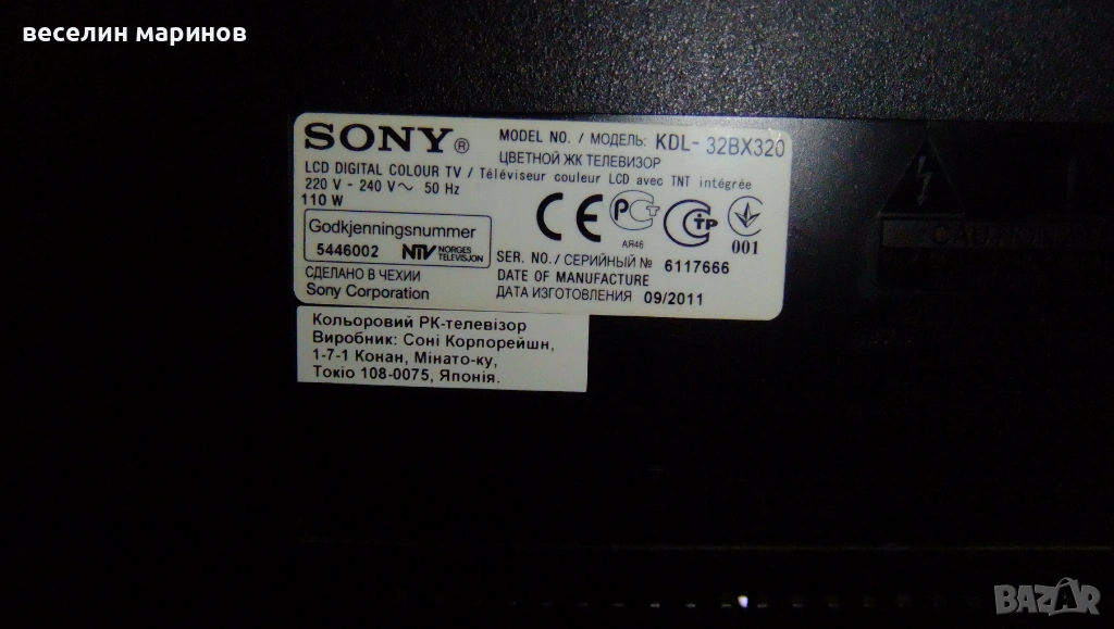 Продавам телевизор SONY KDL - 32BX320 → Обява 54304559