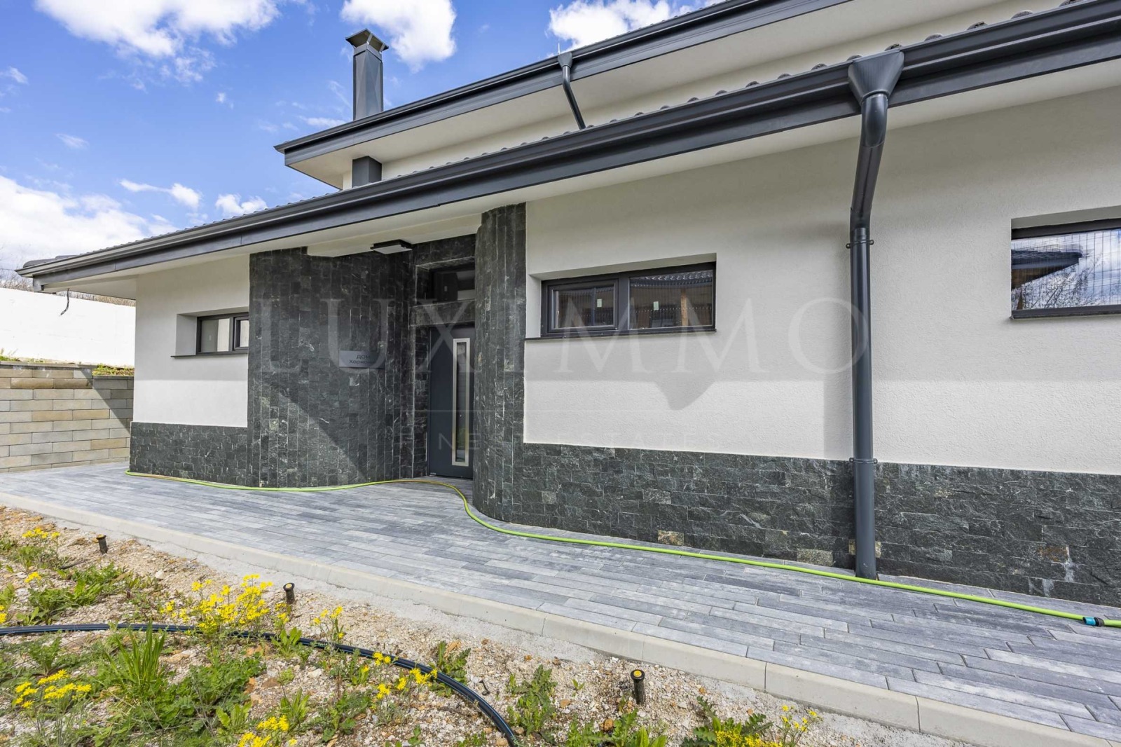Ексклузивно представяме новопостроена къща за продажба в с. Гурмазово впечатляващ имот, създаден с внимание към всеки детайл и съвременен лукс. Разположена на слънчев южен склон над селото, само на 17 км от идеалния център на София, в спокойна среда с ограничено застрояване и изобилие от зеленина, къщата предлага рядка комбинация от тишина, природа и бърз достъп до града, допълнена от 360 панорамни гледки и гледка към Витоша.