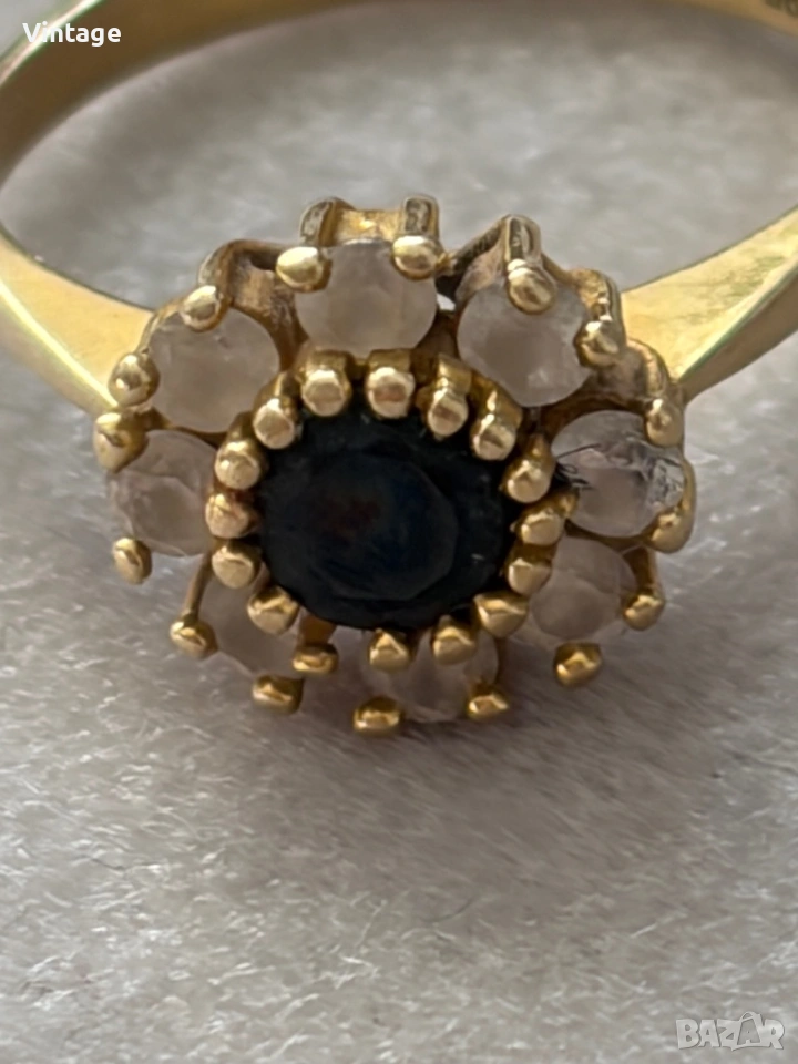 Старинен златен пръстен с естествени камъни → Обява 54304792