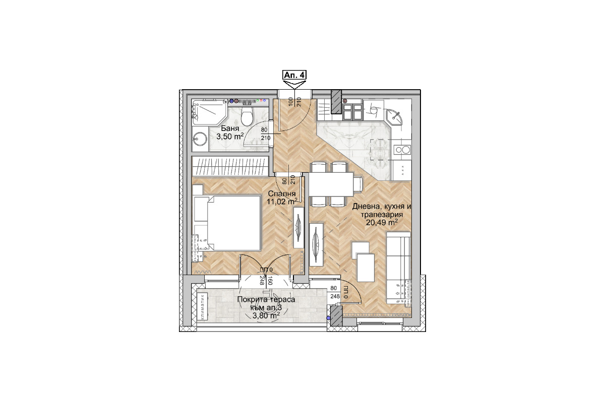 БЕЗ КОМИСИОН! Естейт Про представя двустаен апартамент (55.12 кв.м) на партерен етаж в новострояща се сграда.
