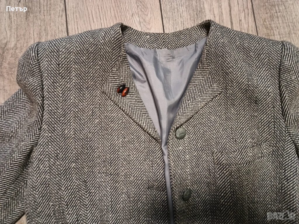 Сакото е в отлично състояние ,модел че с попска яка, размерите измерени от мен са: дълж. ръкави-57см., дълж.гръб-71см., широчина от мишница до мишница-53см.