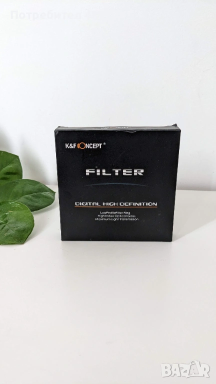 НД филтър с регулираща се плътност K&F Concept ND2 - ND400 Variable Fader, подходящ за всички обективи на Canon, Nikon, Sony, Pentax, Olympus и други със съответната резба за филтри.