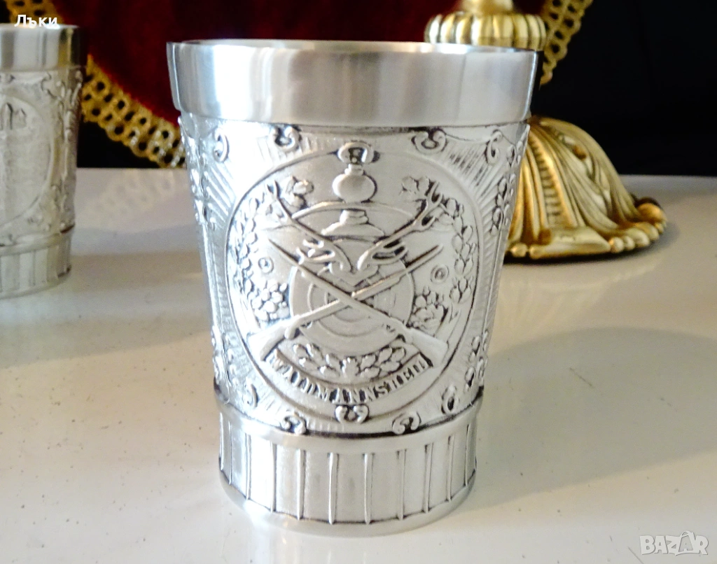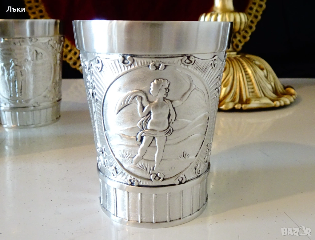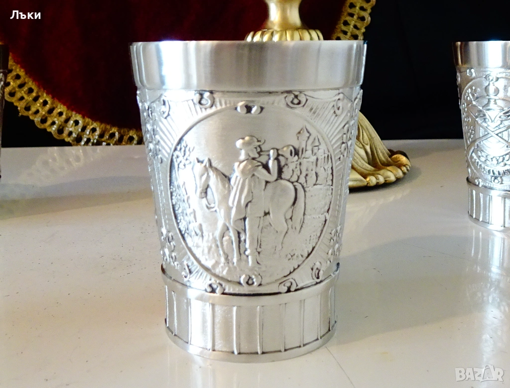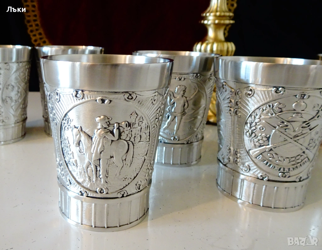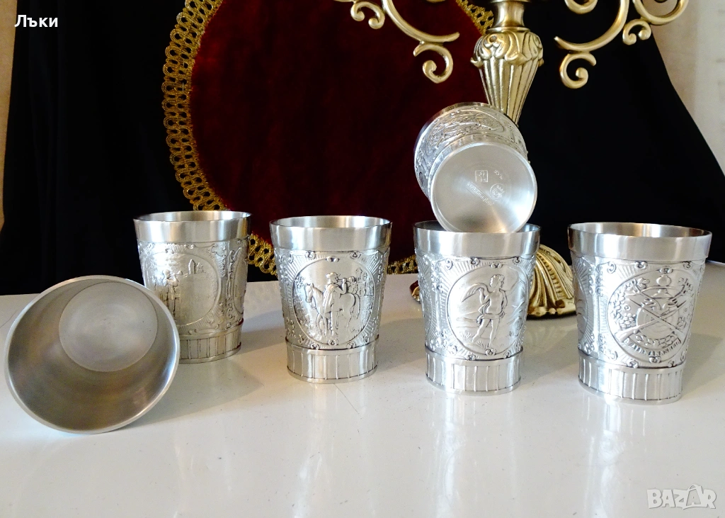 Стари немски калаени чаши за ракия,майсторска ръчна