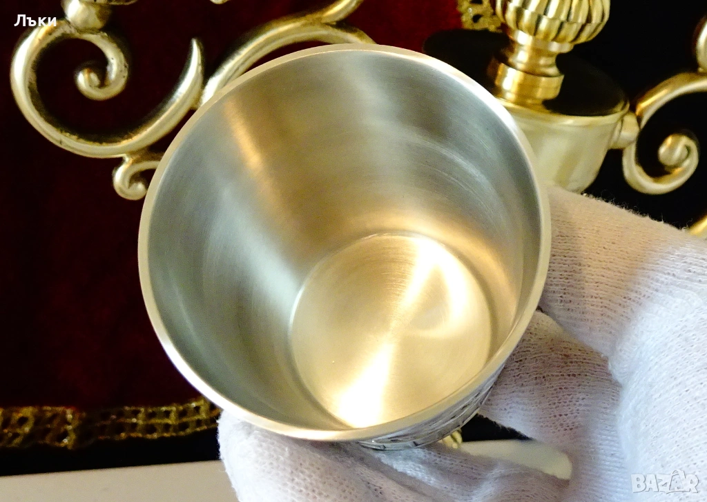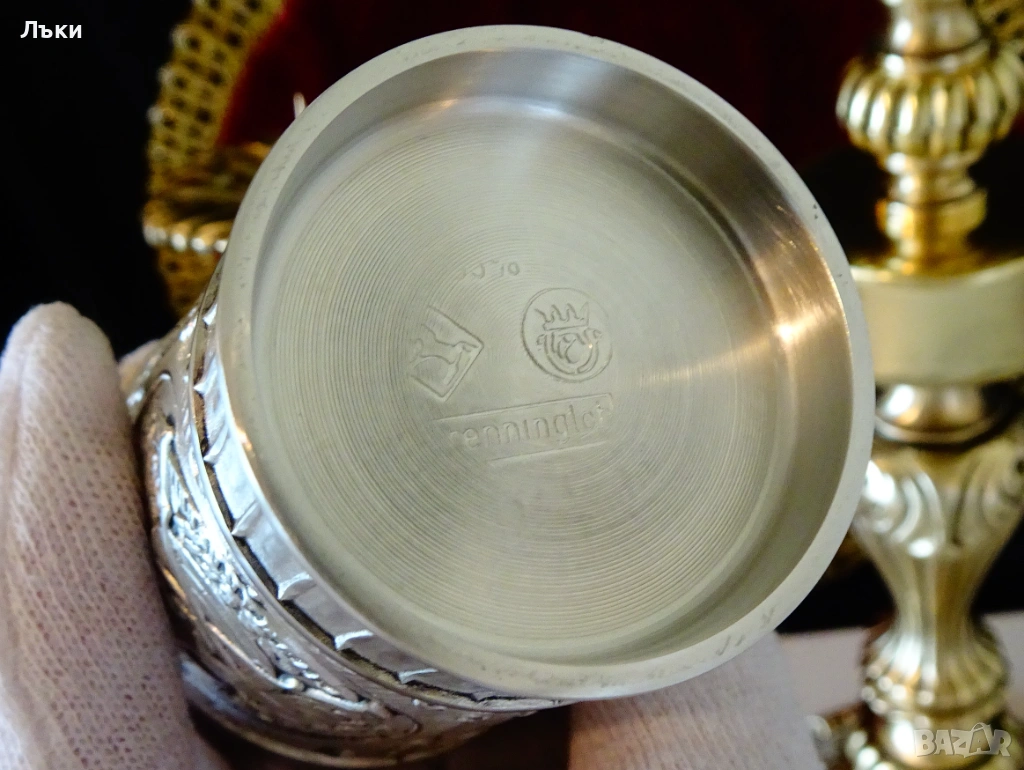 изработка от 95% калай и 5% сребро,маркирани с релефен печат на производителя Grenningloh,както и със знак
