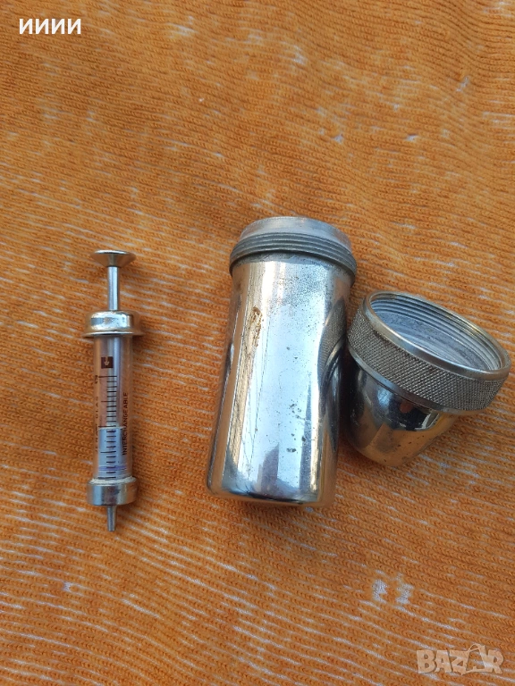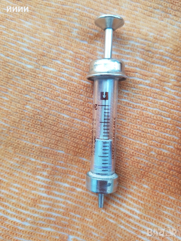 Стъклена спринцовка в метален калъф → Обява 54305843