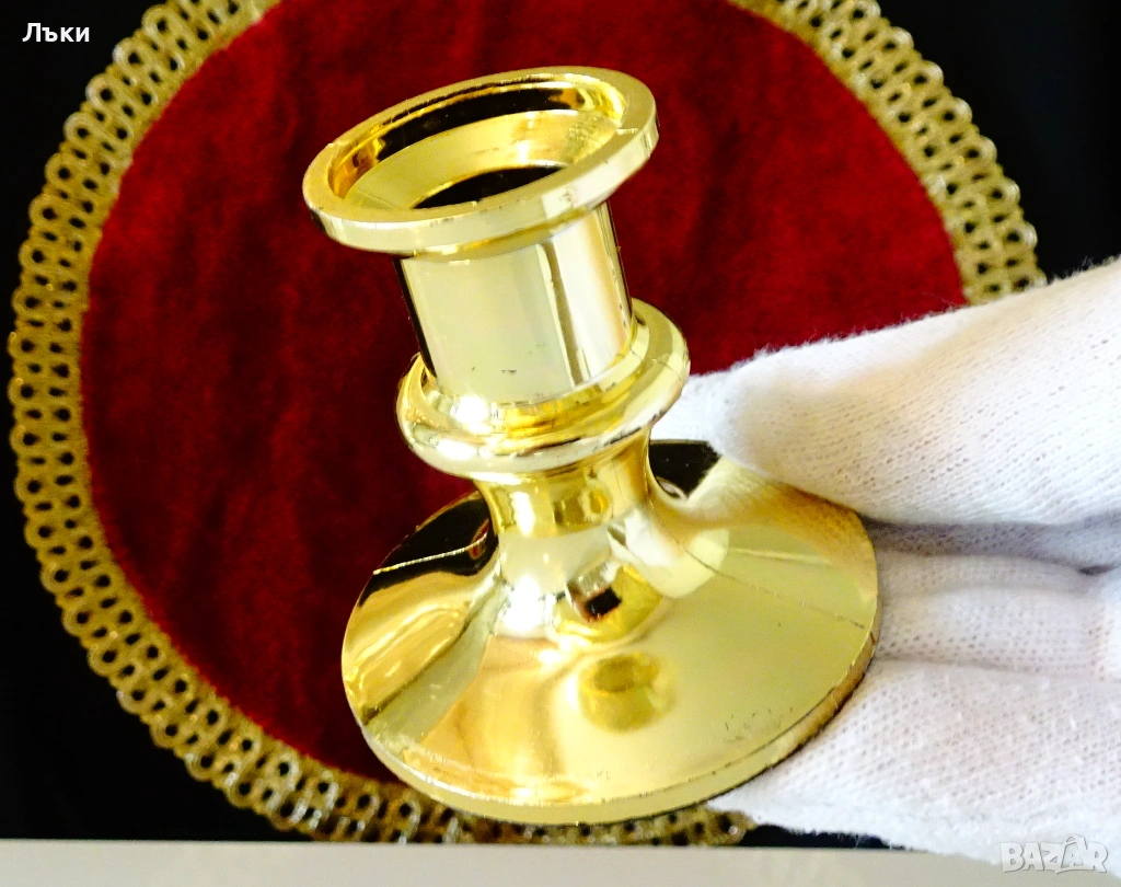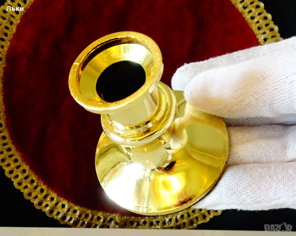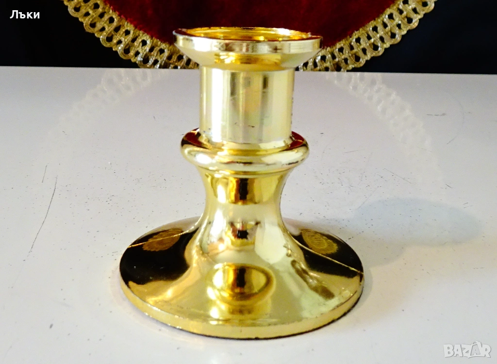 Стар настолен свещник,изработен от качествено позлатена пластмаса.Основата