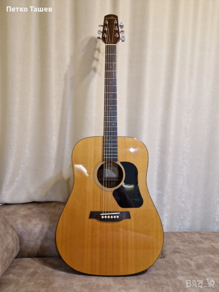 Продавам акустична китара Walden CD350 (Standard Line). Инструментът е в отлично визуално и техническо състояние, без забележки по тялото, грифа или праговете. Изключително удобна за свирене с много добър и балансиран звук.