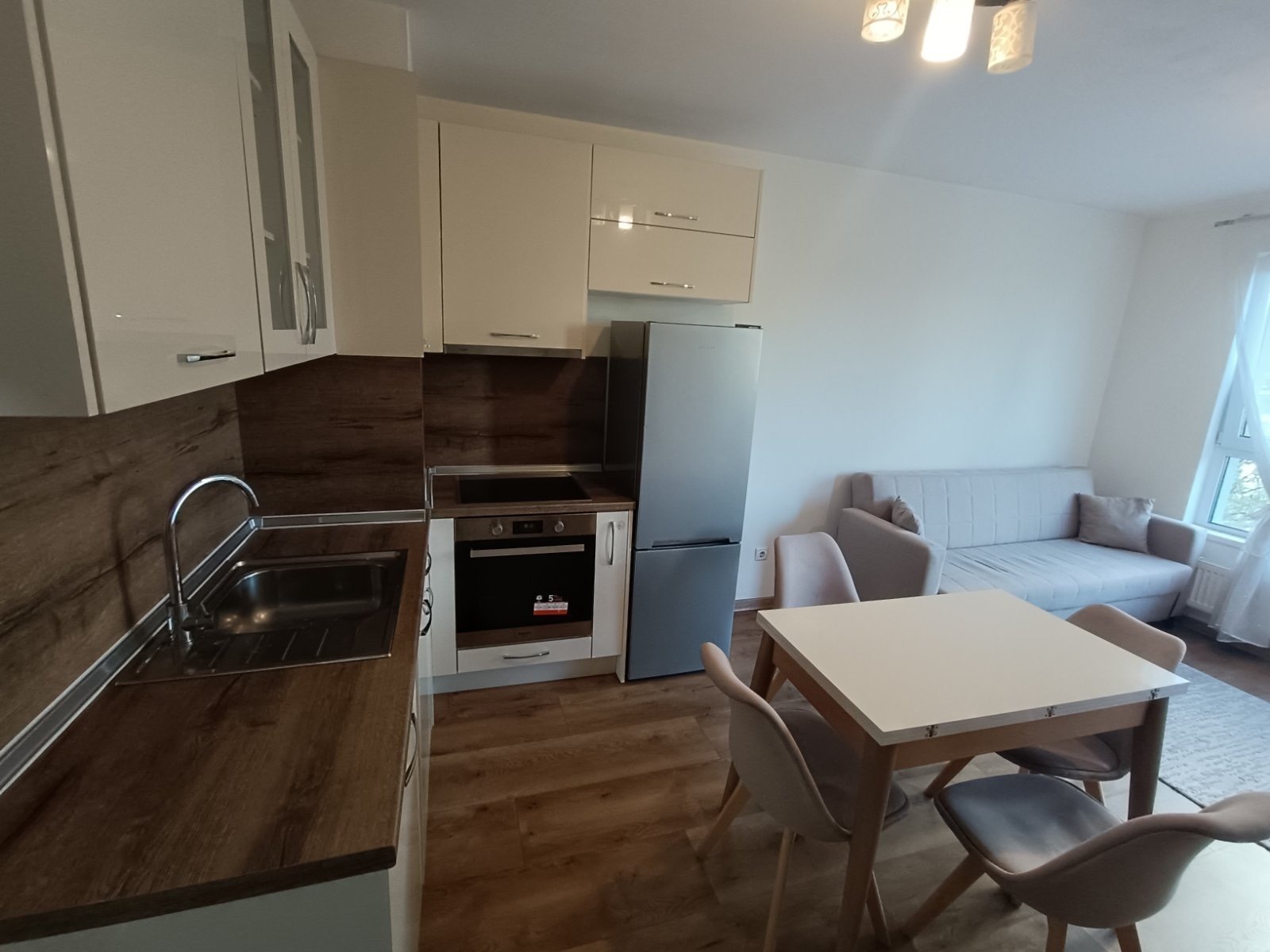 Двустаен обзаведен апартамент в ново строителство. Жилището се намира на 5 минути от метростанция Бели Дунав, магазини и спирки ба градски транспорт. Хол с кухненски бокс, спалня, антре, тераса, баня и тоалетна.
