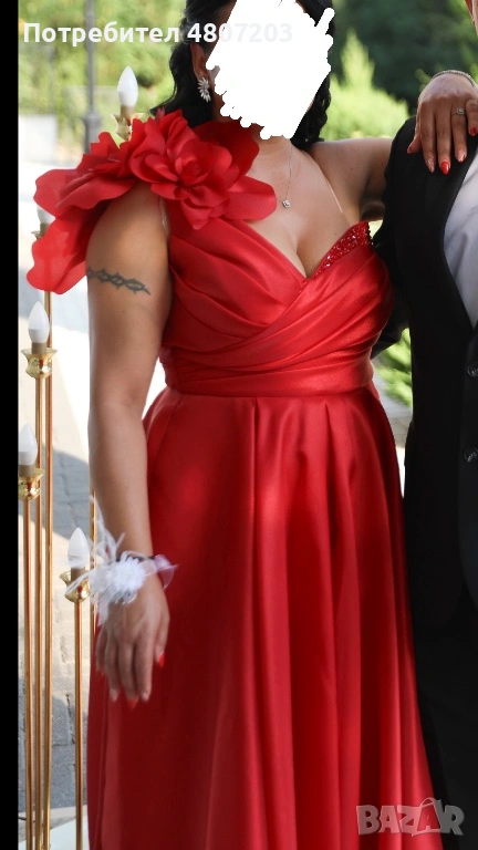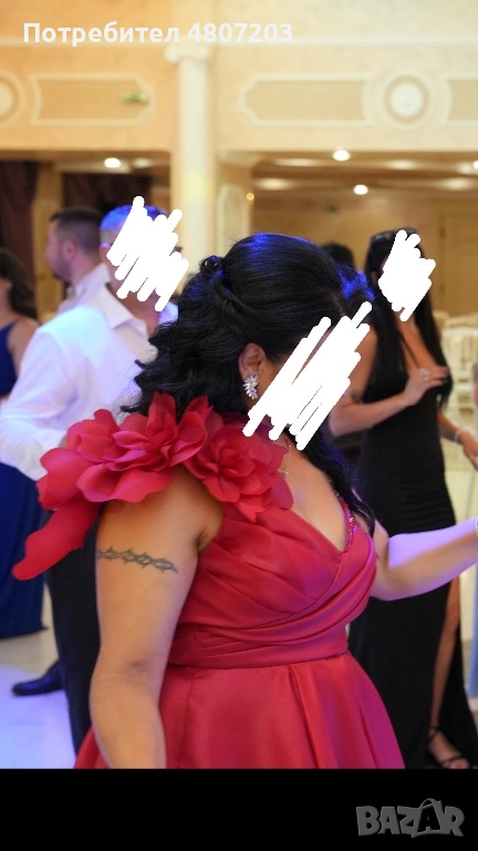 На дясната презрамка са поставени цветчета, които са част от роклята, но могат с лекота да се премахнат понеже са клипс иглички и може да се носи без цветята или (с по-малко цветя)…