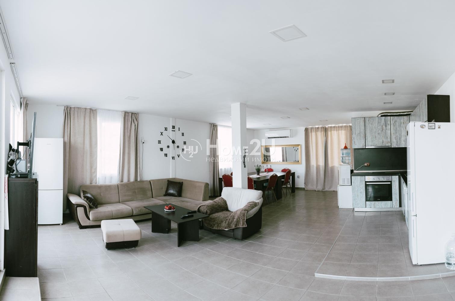 Този имот предоставя отлична среда на живот къщата се разпростира на 224 квадратни метра, продава се обзаведена и оборудвана- готова да посрещне новите си собственици! Състои се от голяма дневна- 65м2, 4 големи, напълно оборудвани спални със самостоятелни бани и тоалетни- 24м2, голяма веранда с барбекю, от която можете спокойно да съзерцавате изгревите на слънцето и огромния си двор.