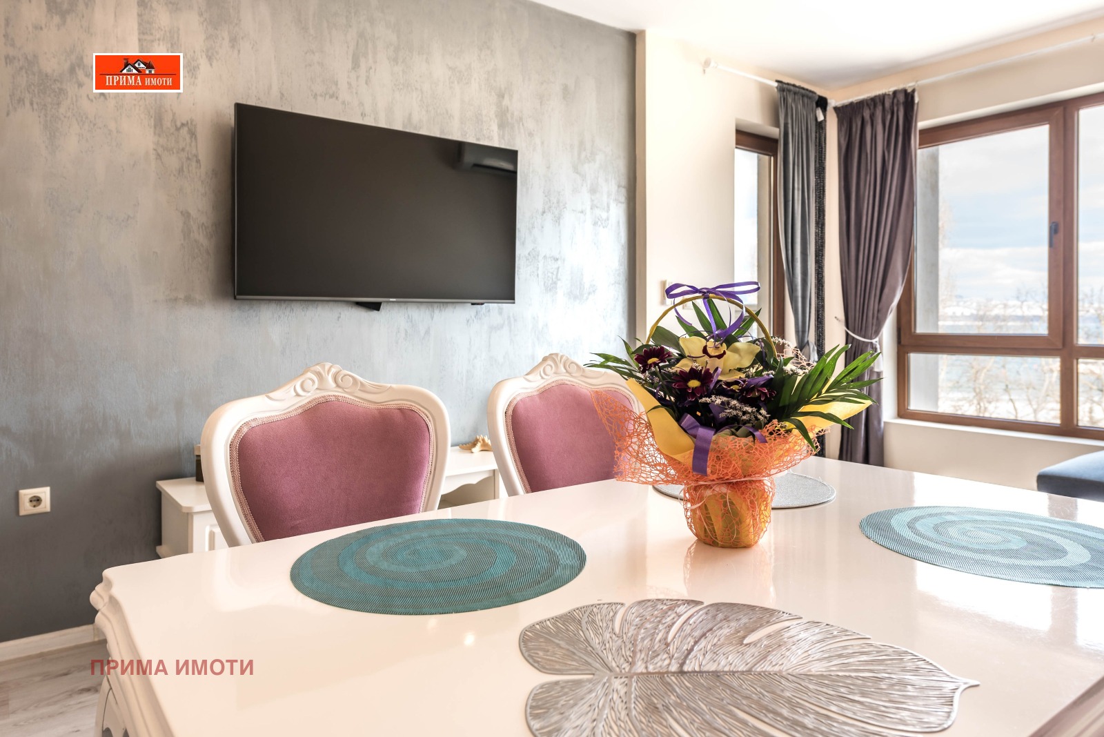 ФРОНТАЛНА НЕСКРИЕВАЕМА МОРСКА ПАНОРАМА! ПЪРВА ЛИНИЯ ДО МОРЕТО! ПРИМА ИМОТИ ОТДАВА ПОД НАЕМ ЛУКСОЗЕН АПАРТАМЕНТ, който се намира в затворен комплекс-Varna South Bay Beach Residence с прекрасна морска панорама на метри от плажната ивица. Разполага също със спалня, всекидневна с разтегателен диван+напълно оборудвана кухня - фурна с котлони, хладилник, пералня със сушилня, два смарт телевизора. Имота е обзаведен и оборудван с всичко необходимо за едно домакинство. Затворен комплекс с басейни, сладкарница, магазини.Свободно паркиране.