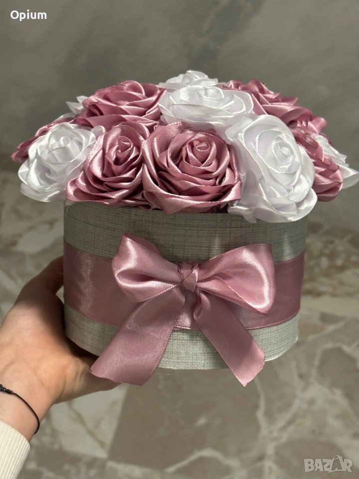 Букети и кутии от сатенени рози, снимка 1 - Декорация за дома - 54308311 Букети и кутии от сатенени рози, снимка 2 - Декорация за дома - 54308311 Букети и кутии от сатенени рози, снимка 3 - Декорация за дома - 54308311 1/3