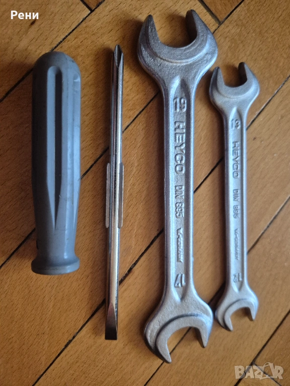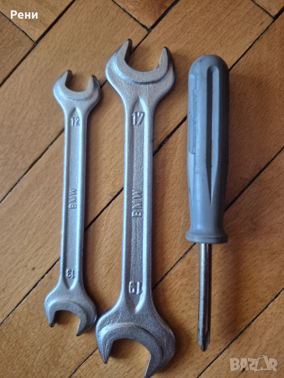 Двустранна отвертка и две гаечни ключета 12/13 и 17/19 имам и ключ за гуми