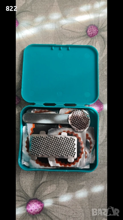 Лепенки:8 бр. различна големина и форма,метална грапа/стъралка/ за почистване на гумата и инструкции за употреба.