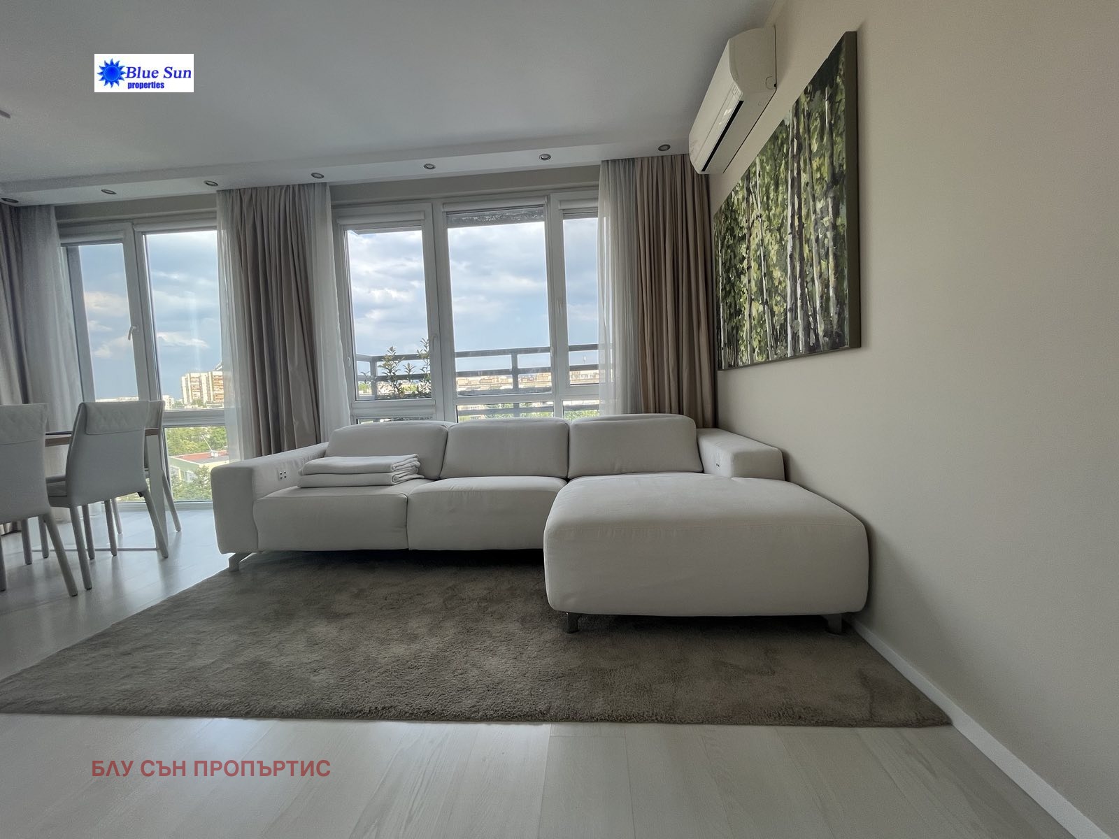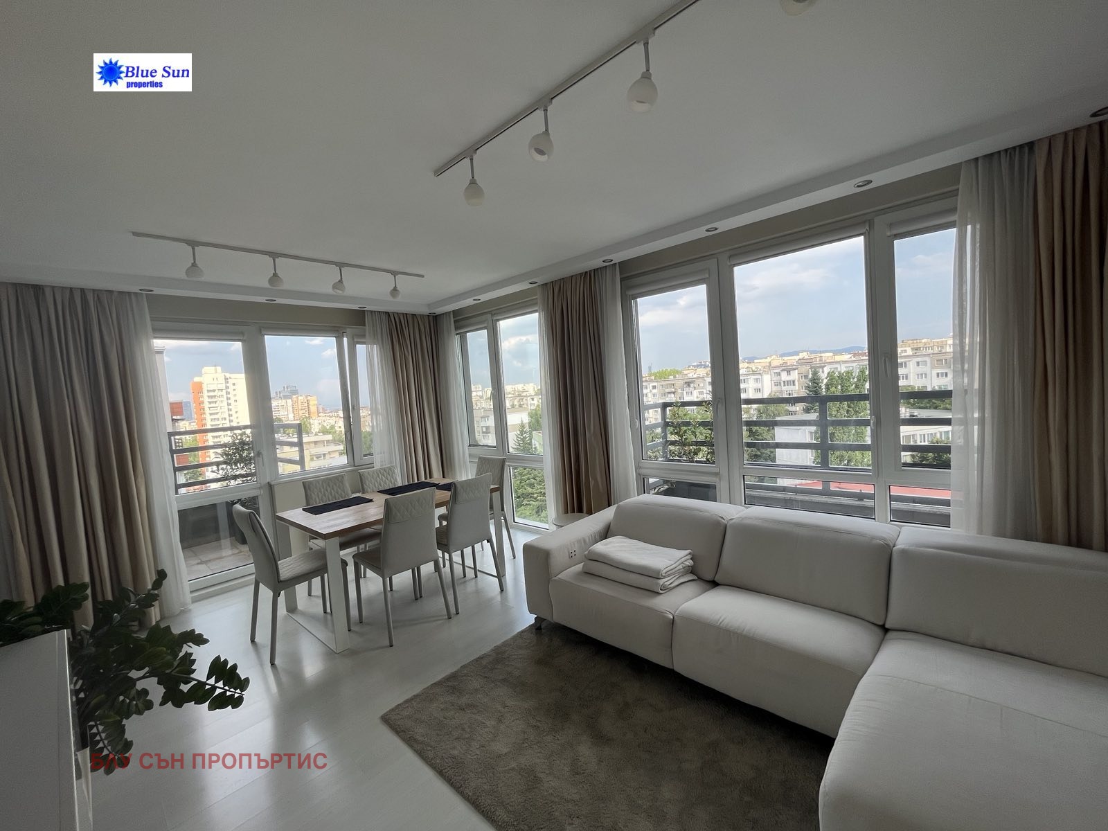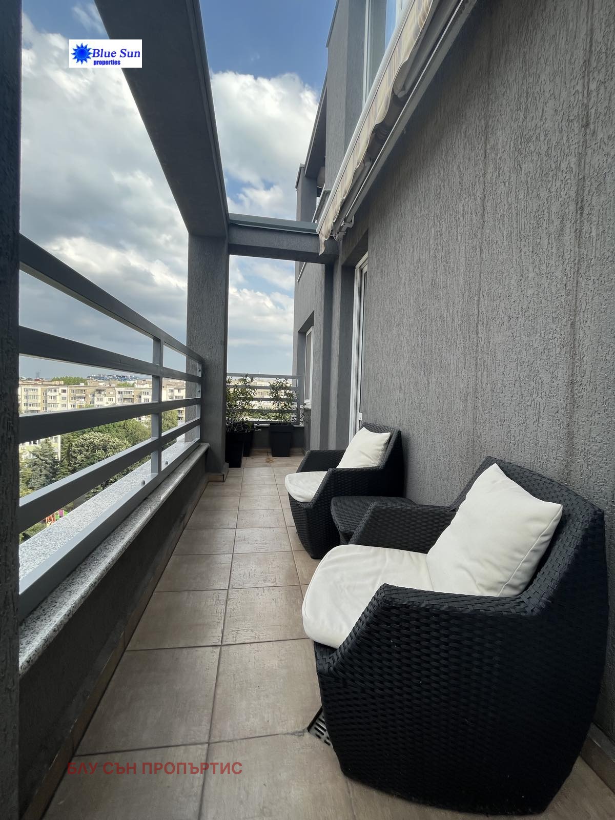 ЛУКСОЗЕН И СВЕТЪЛ АПАРТАМЕНТ В ПЕРФЕКТНО СЪСТОЯНИЕ! Намира се в затворен комплекс, с видеонаблюдение и вътрешен двор. В близост до спирки на градски транспорт, Ловен парк, спортен комплекс, детски площадки, ресторанти и магазини. Апартаментът е стилно обзаведен и НАПЪЛНО ОБОРУДВАН с висок клас електроуреди за вграждане, както и всички необходими малки електроуреди, кухненски, домакински и спални принадлежности. Жилището е непреходно, много светло и комфортно, с две самостоятелни спални, дневна с френски прозорци и функционална кухня, баня с тоалетна, отделна тоалетна, две тераси. Изложение югоизток. Осигурено е ЕЖЕСЕДМИЧНО ПОЧИСТВАНЕ, което задължително се заплаща при наемане - 140 EUR/месец. Възможност за наемане на ПОДЗЕМЕН ГАРАЖ с топла връзка срещу допълнително заплащане - 150 EUR/месец. Отдава се дългосрочно на сериозни и отговорни наематели. Без домашни любимци.