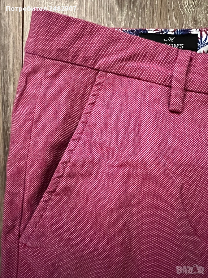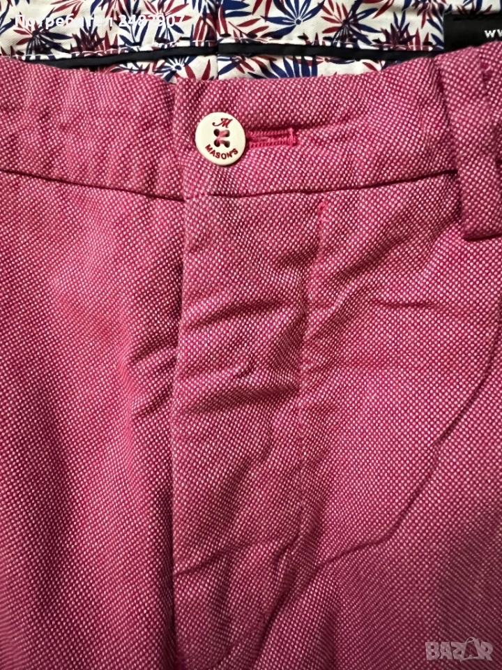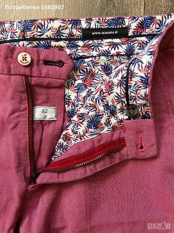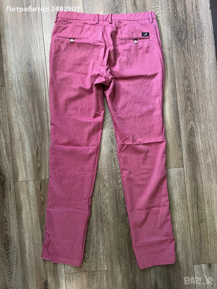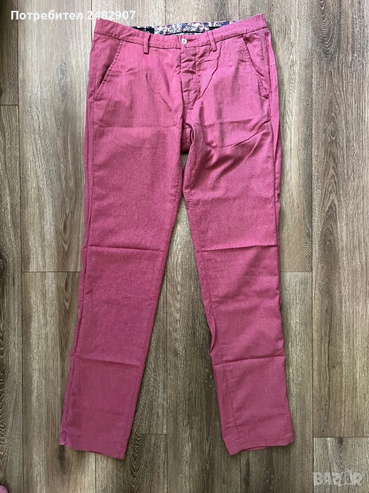 Спортно-елегантен мъжки панталон - високо качество, размер 52 (М). Ширина в талията - 45 см, дължина от талията до чатала - 24 см, дължина от талията до долу - 114 см, ширина на крачола в долната част - 19 см. Много запазен, обличан веднъж за повод, без забележки, неразличим от нов.