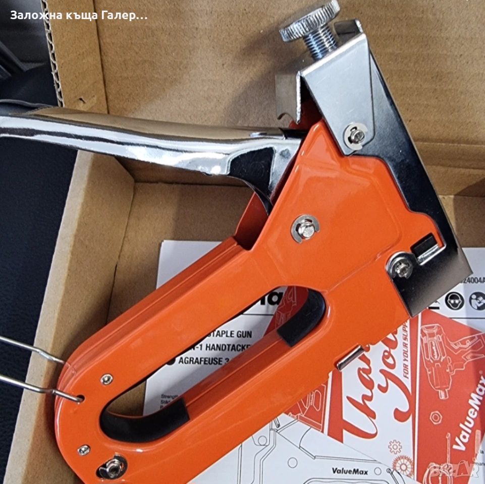 Практичен инструмент за бързо и удобно закрепване на различни материали. Подходящ за дома, работилница или строителни дейности.