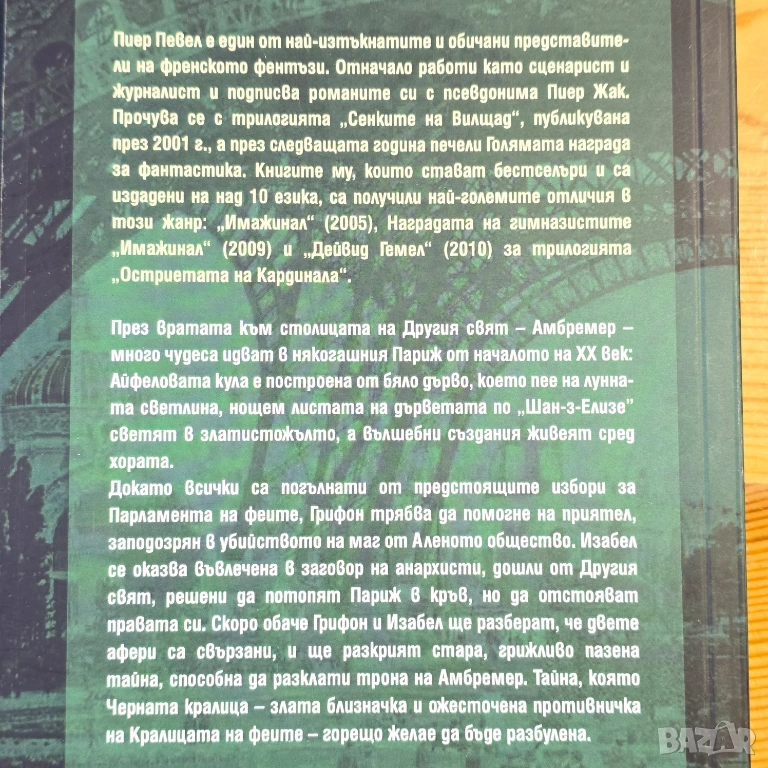 Финалът на трилогията ни изправя пред най-голямото изпитание. Докато Париж се вълнува от избори за „Парламента на феите“, градът е застрашен от заговор на анархисти от Амбремер. Грифон и Изабел трябва да разкрият тайна, пазена с векове – тайна, способна да разклати трона на самото Неподвижно кралство. Зловещата Черна кралица дебне в сенките, а залозите са по-високи от всякога. Епичен и вълшебен завършек на една незабравима поредица.