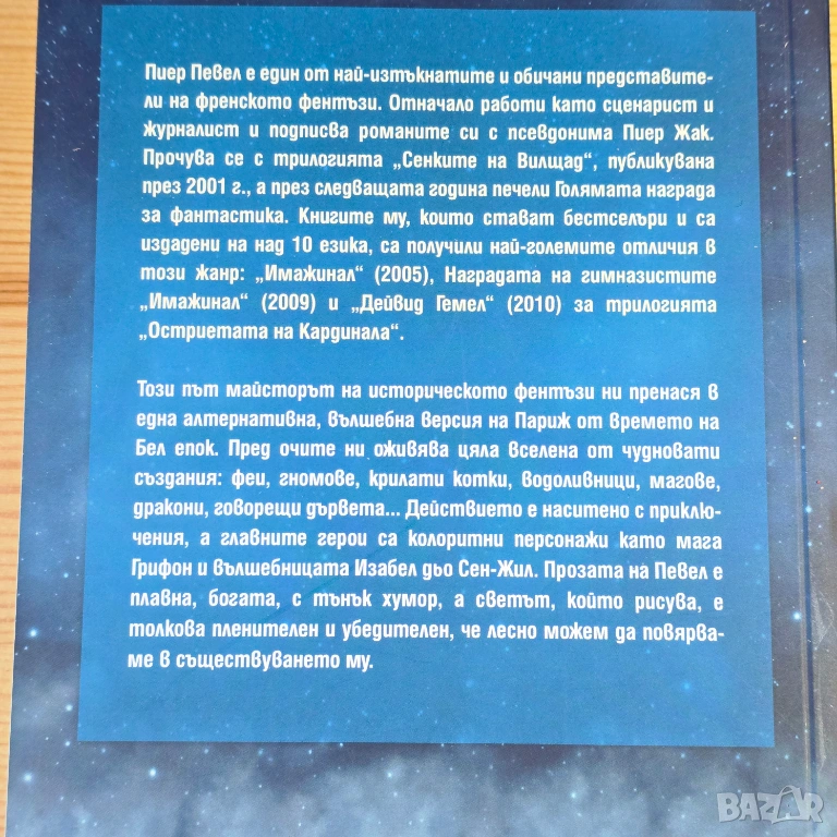 Мистериите в магическия Париж се задълбочават. Едно странно убийство на антиквар отвежда маг Грифон назад в миналото му, когато още е бил млад рицар. Стари тайни изплуват на повърхността, а интригите между нашето измерение и Другия свят стават все по-опасни. Пиер Певел майсторски преплита детективски сюжет с приказна атмосфера, докато героите разплитат нишките на конспирация, която може да промени баланса между двата свята.