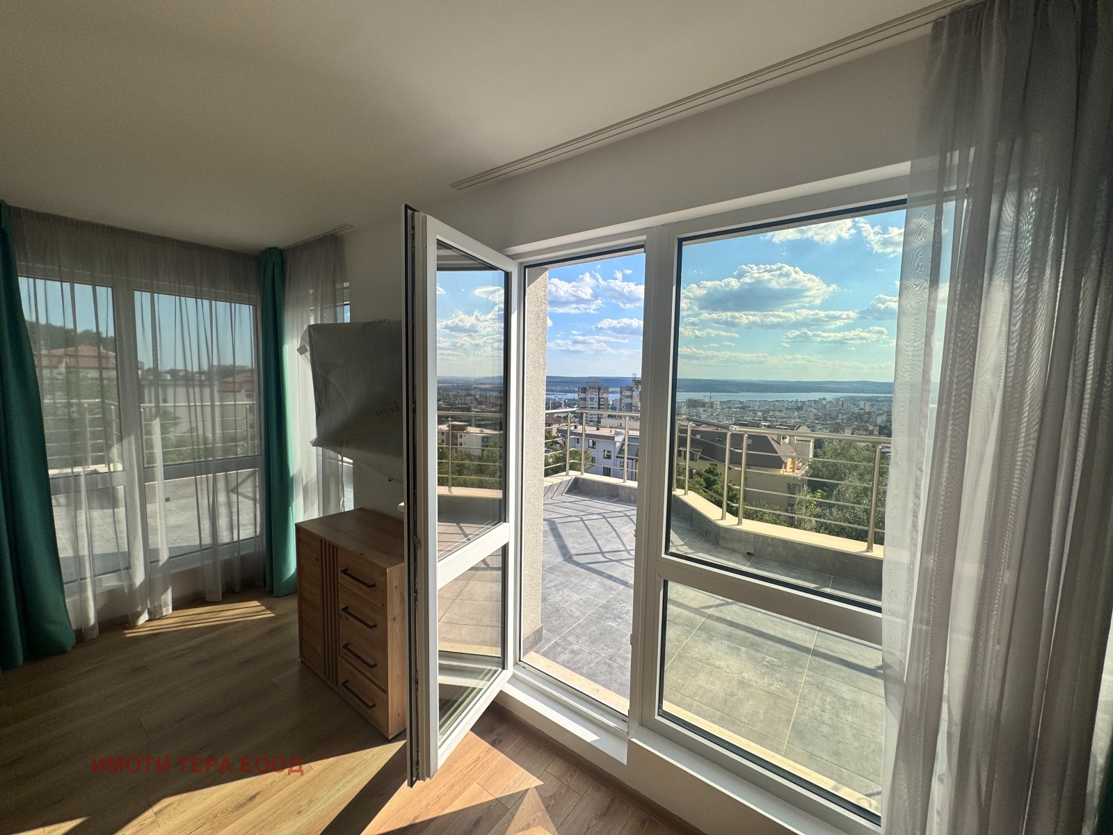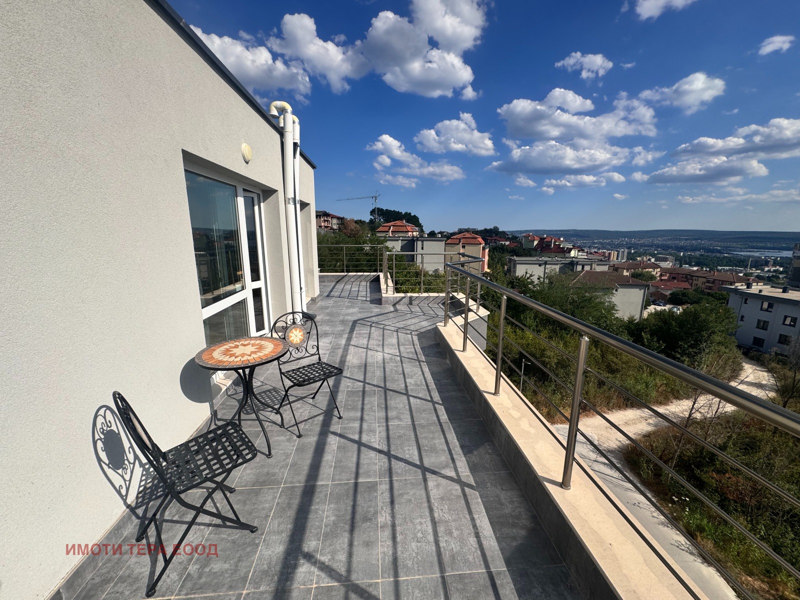 Предлагаме под наем стилен и просторен апартамент в гр. Варна, кв. Пчелина, разположен на последния (4-ти) етаж в нова, модерна сграда с асансьор. Състои се от хол с кухненски бокс, спалня, Огромна тераса: 90 кв.м - опасва целия апартамент и предлага място за релакс, барбекю или цветна градина по ваше желание. Гледка: Невероятна панорама към Варненското езеро - романтика и спокойствие в едно. Всичко е абсолютно чисто ново!