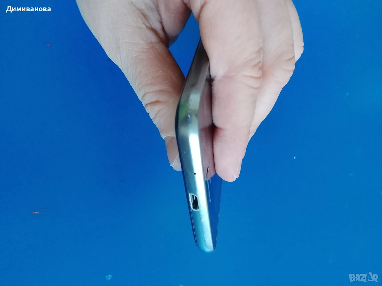 Дисплеят е здрав, без пукнатини. Има лека козметична забележка по страничната рамка (вижда се на снимките).