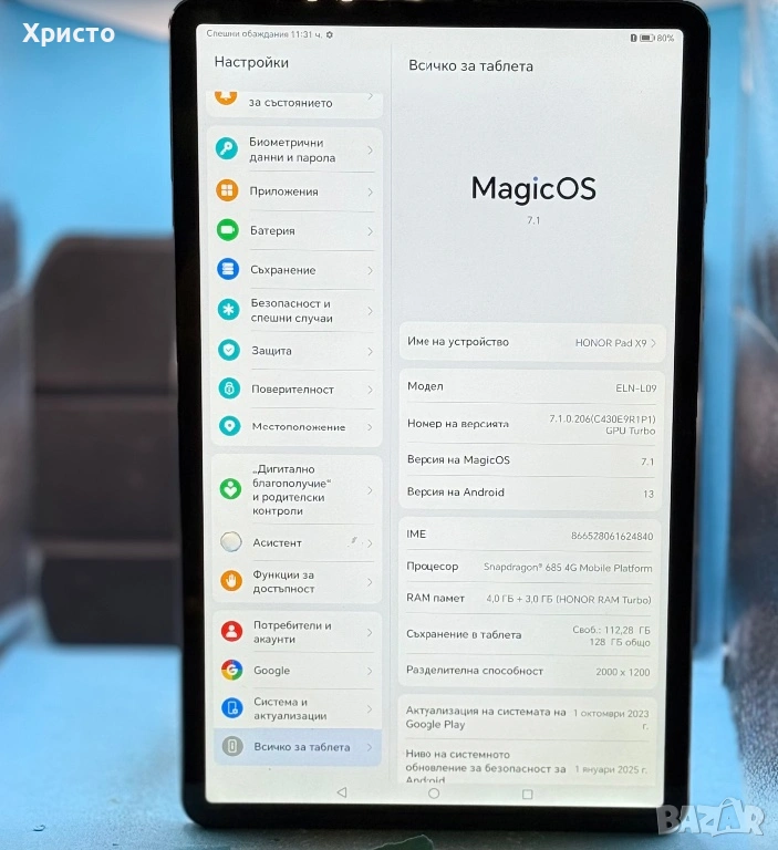 Таблет HONOR Pad X9, Octa-Core, 11.5", 4GB RAM, 128GB, WIFI, Space Gray