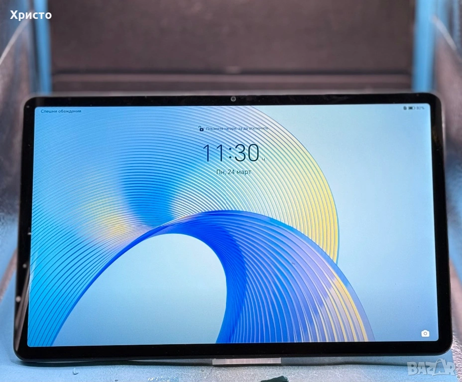 Таблет е в перфектно състояние – като нов. Използван е много малко, което ясно личи както от външния вид, така и от състоянието. Работи безупречно, всички функции са напълно изправни. Още от момента на закупуване е използван с висок клас защитен калъф, който предпазва таблета на 360 градуса. Калъфът се подарява към него. Продава се само таблетът, заедно с калъфа. Без бартери!!!