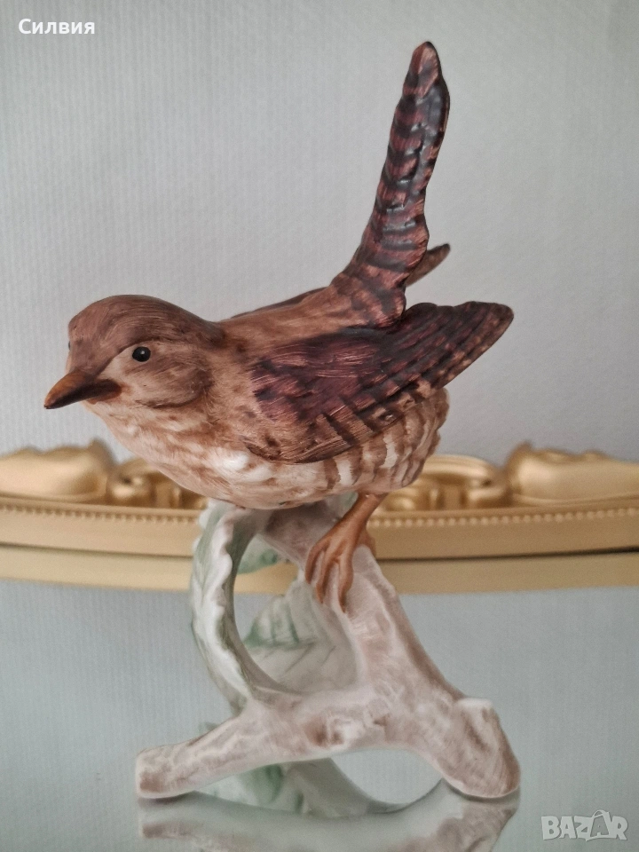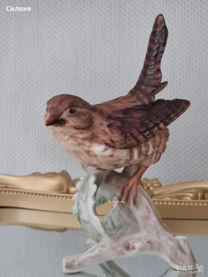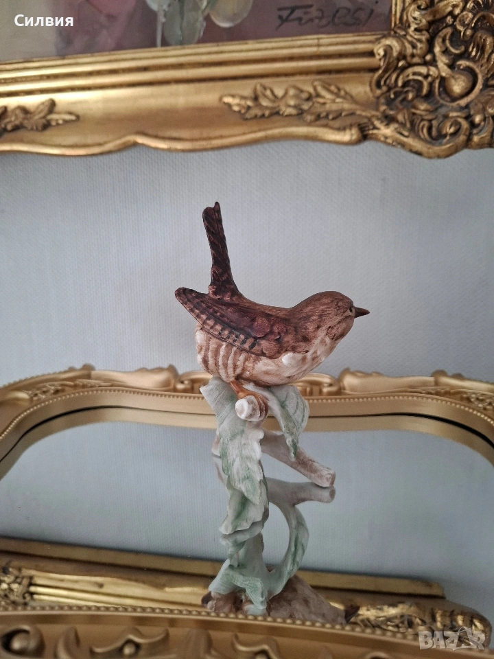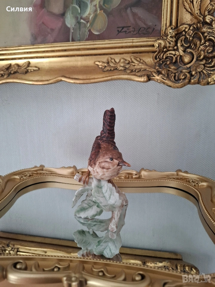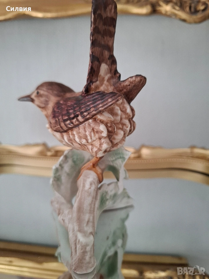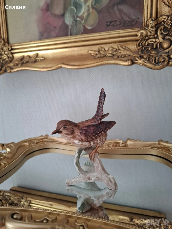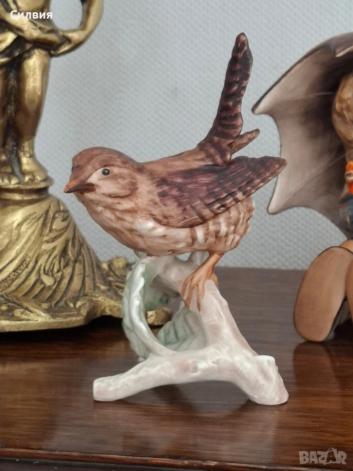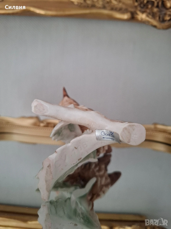 🕊️ Винтидж порцеланова статуетка Goebel – „Горско орехче“ (1969) Предлагаме на Вашето внимание истинска класика от немската школа на Goebel – изящна фигурка на птица, носеща духа на миналия век. Изработена с изключително внимание към детайла през 1969 година в тогавашната Западна Германия (W. Germany), тази статуетка е перфектно допълнение към всяка антикварна витрина или интериор с аристократично излъчване. Ръчно моделиран порцелан с фини текстури, пресъздаващи естествения чар на природата. Ръчна декорация: Всяко перо е изрисувано на ръка с меки, земни тонове, което придава на птицата жив и реалистичен вид. Височина: 12 см. Състояние: Статуетката е съхранила своята красота през десетилетията. Важна бележка за колекционерите: На гърба на фигурката върхът на едното листо от основата е отчупен (моля, разгледайте снимките). Тази малка следа от времето е съобразена с цената и не отнема от цялостния естетически чар на композицията. Тази фигурка не е просто предмет, а малко късче история, което носи уют и ретро романтика. Позволете на този нежен екземпляр от 60-те години да внесе частица природа и изкуство във Вашия дом.