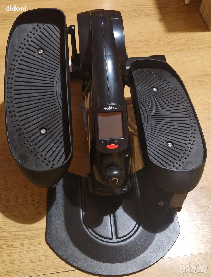 Тренажор за крака,MAXXMEE С това устройство за тренировка MAXXMEE можете да правите лична тренировка у дома, дори докато седите! Това елегантно устройство за тренировка е безжично, бързо се настройва и е изключително тихо – идеално за тренировки за корем, крака и седалищни мускули, докато гледате телевизия, четете или работите на компютъра. Механизмът осигурява елиптично движение за прецизно изпълнение, което прави устройството за тренировка MAXXMEE подходящо за всички възрасти и нива на физическа подготовка. Горете калории, докато едновременно тренирате прасците, бедрата, седалищните мускули, ханша, гърба и корема. Осемте нива на съпротивление позволяват персонализирана тренировка. Устройството е здраво, разполага с неплъзгащи се педали и стопер на колелцата – осигуряващи максимална безопасност по време на тренировка.