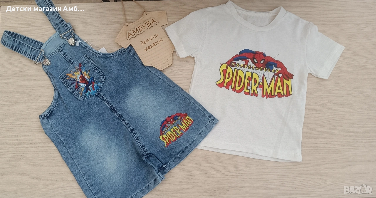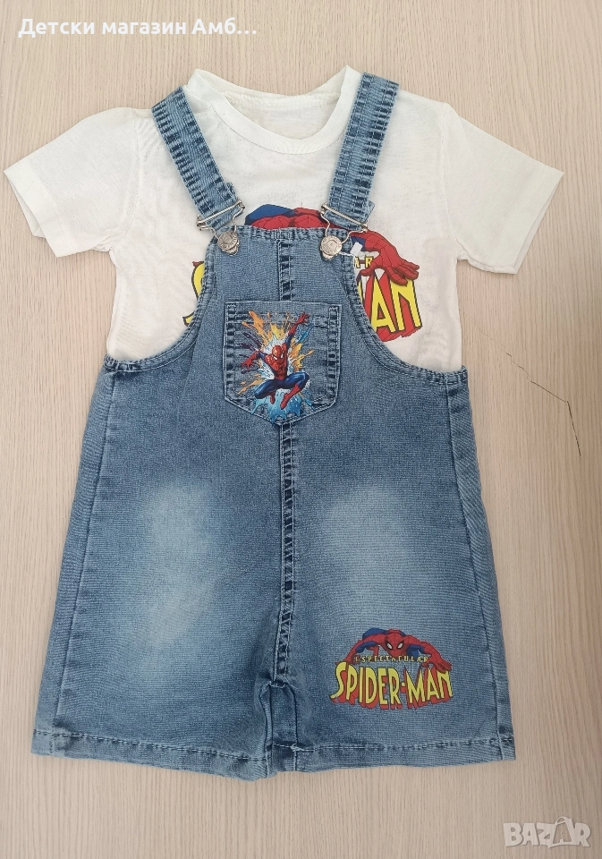 Детски дънков гащеризон на Спайдърмен с тениска, снимка 1 - Детски комплекти - 54311355 Детски дънков гащеризон на Спайдърмен с тениска, снимка 2 - Детски комплекти - 54311355 1/2