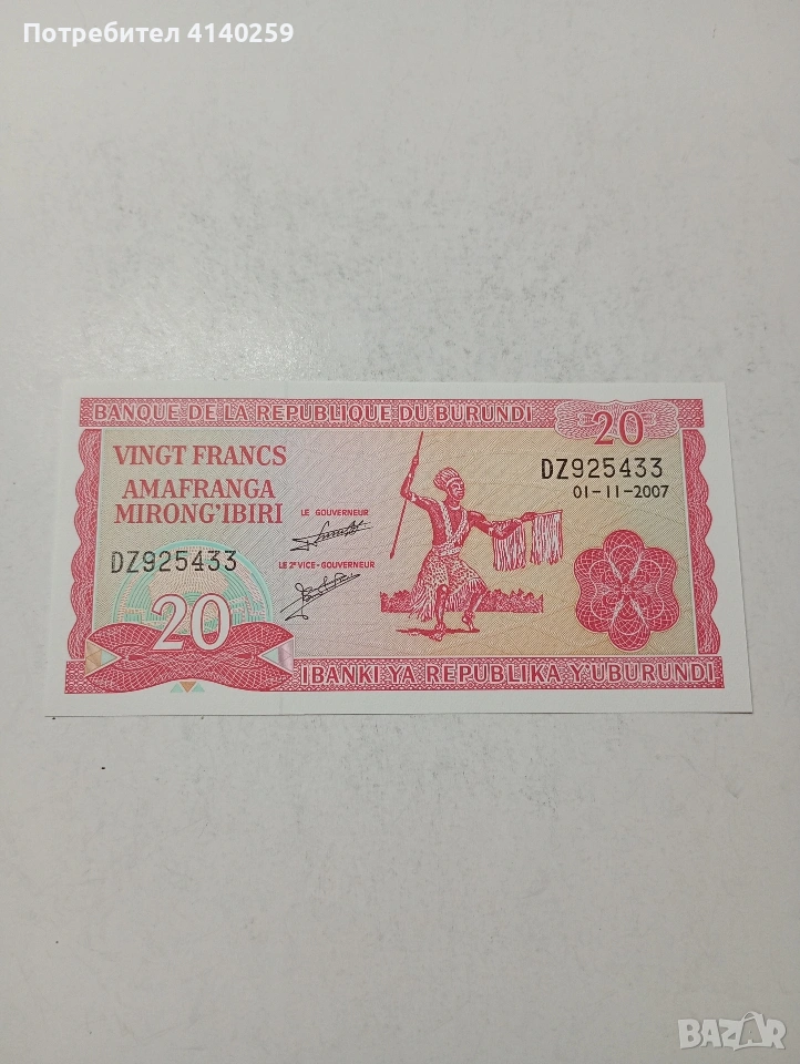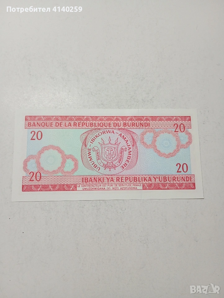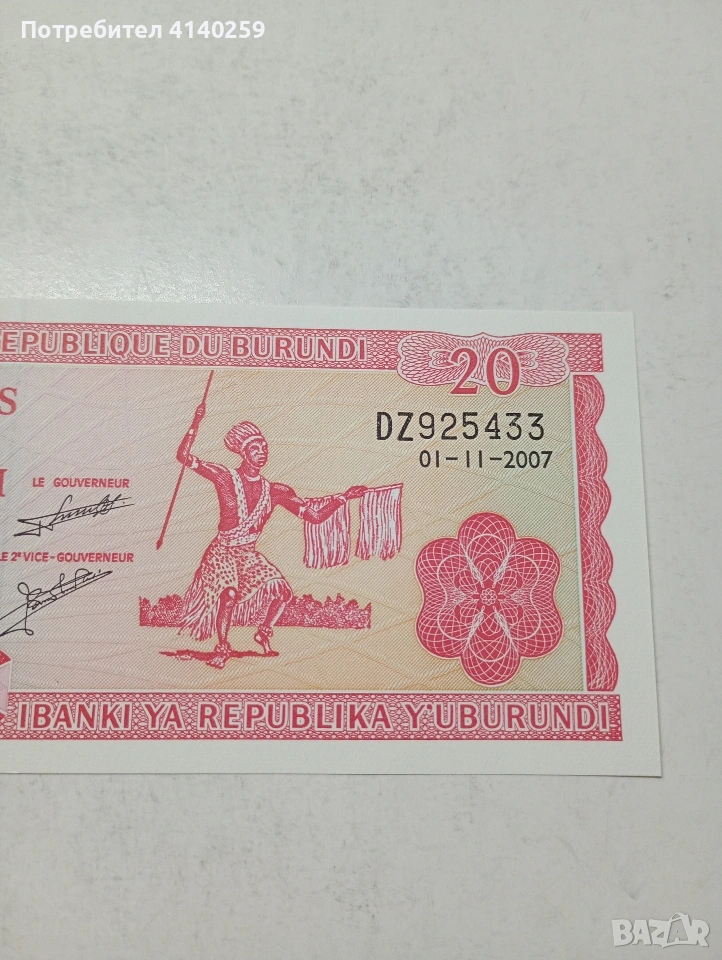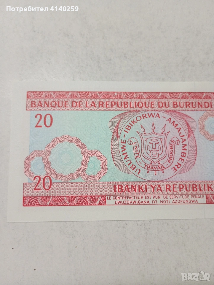 БУРУНДИ БАНКНОТА , снимка 1 - Нумизматика и бонистика - 54311696 БУРУНДИ БАНКНОТА , снимка 2 - Нумизматика и бонистика - 54311696 БУРУНДИ БАНКНОТА , снимка 3 - Нумизматика и бонистика - 54311696 БУРУНДИ БАНКНОТА , снимка 4 - Нумизматика и бонистика - 54311696 1/4