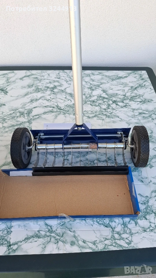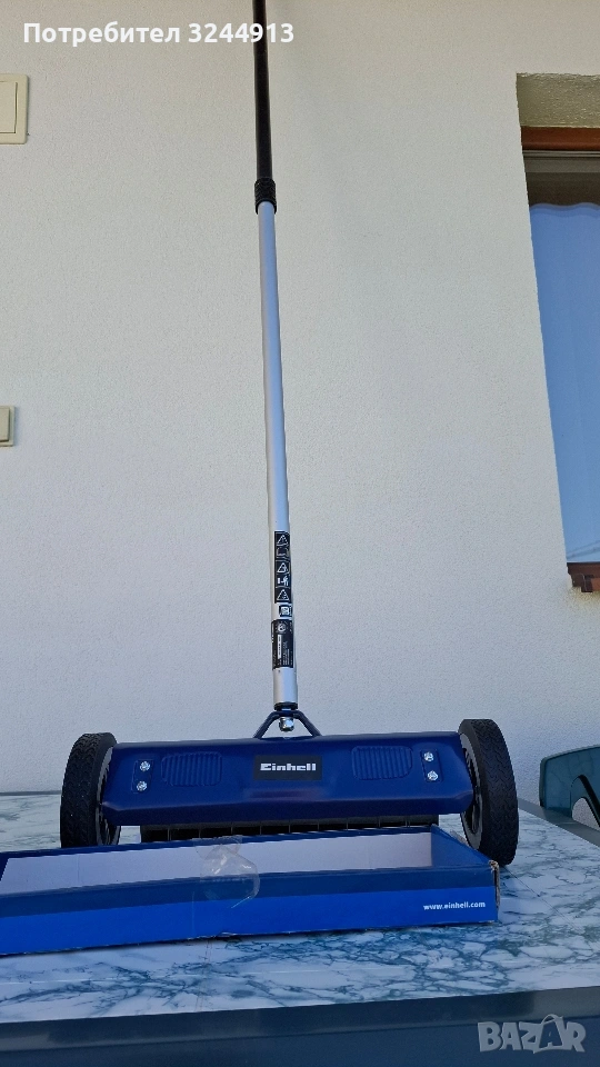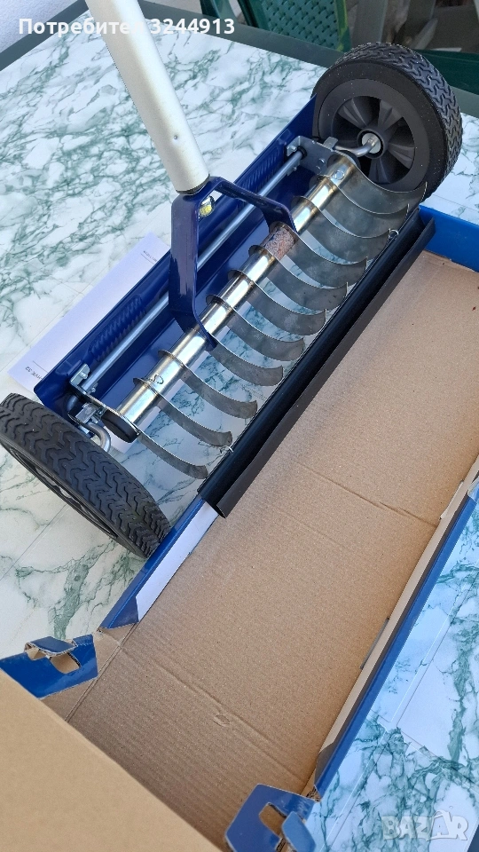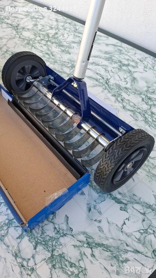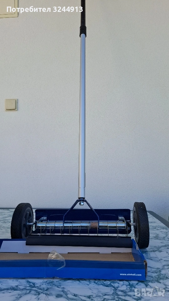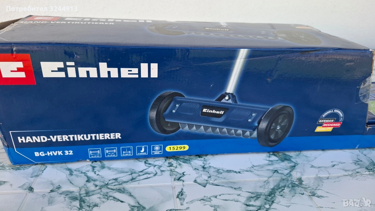 Чисто нов ръчен аератор за трева Einhell BG-HVK 32. Тип: Ръчен градински инструмент за аериране на морава. Марка: Einhell GERMANY Функция: Помага за отстраняване на мъх и плевели от тревните площи. Характеристики: Метални остриета и колела за лесно движение по тревата. Цена 30€ . Изпращам по ЕКОНТ преглед. Моля разгледайте и другите ми предложения.