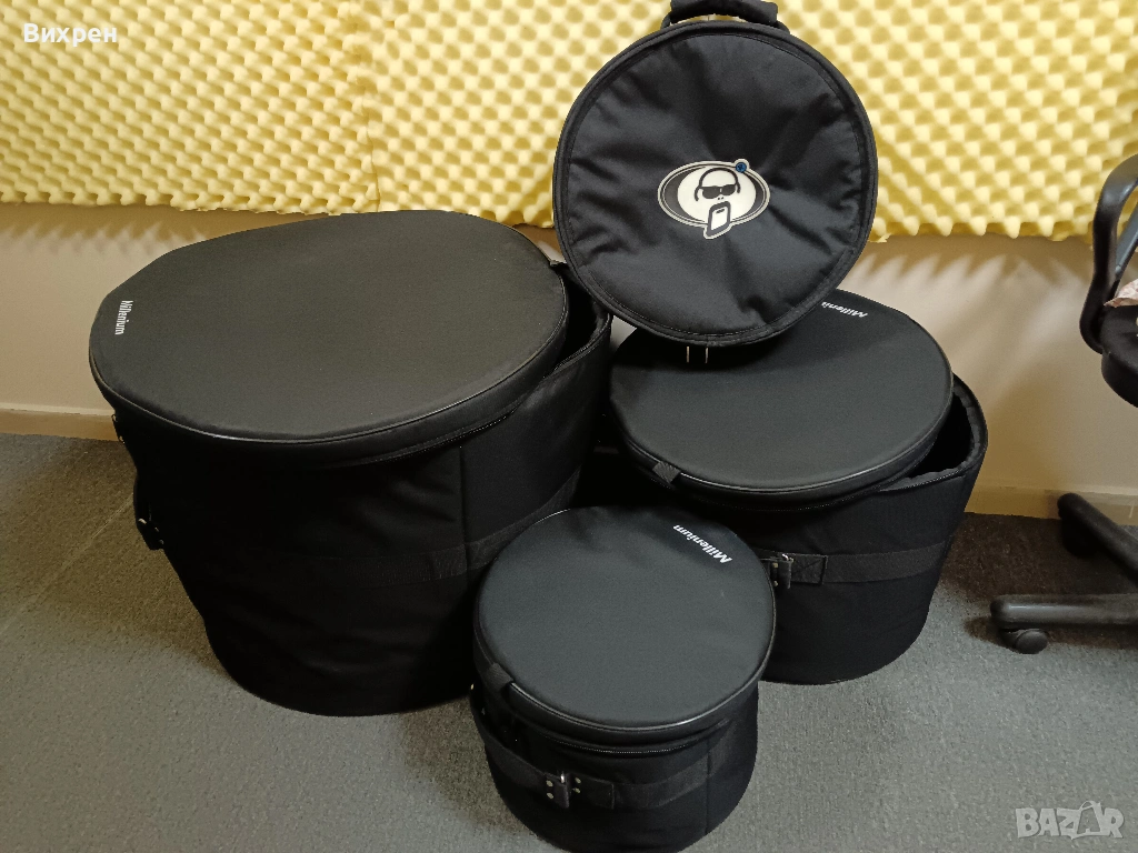 Продавам кейсове Millenium Tour + Protection Racket. Имат подсилени с панели от фибростъкло дъна и капаци. Купих ги за всеки случай, но така и си седят в студиото и не се ползват. Размерите са: