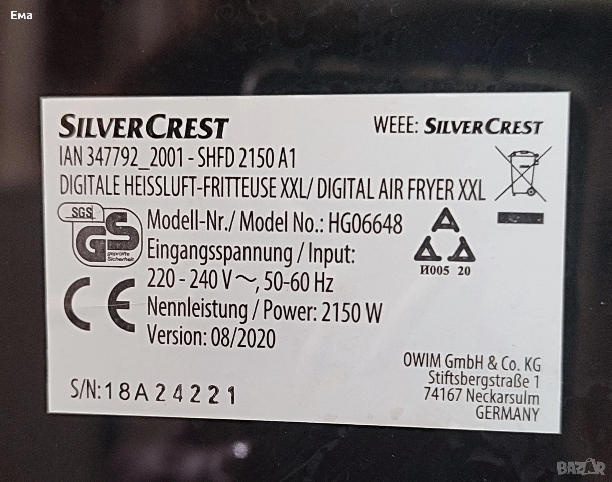 Фритюрник с горещ въздух Silver Crest , снимка 1 - Фритюрници - 54312341 Фритюрник с горещ въздух Silver Crest , снимка 2 - Фритюрници - 54312341 Фритюрник с горещ въздух Silver Crest , снимка 3 - Фритюрници - 54312341 Фритюрник с горещ въздух Silver Crest , снимка 4 - Фритюрници - 54312341 Фритюрник с горещ въздух Silver Crest , снимка 5 - Фритюрници - 54312341 Фритюрник с горещ въздух Silver Crest , снимка 6 - Фритюрници - 54312341 Фритюрник с горещ въздух Silver Crest , снимка 7 - Фритюрници - 54312341 1/7