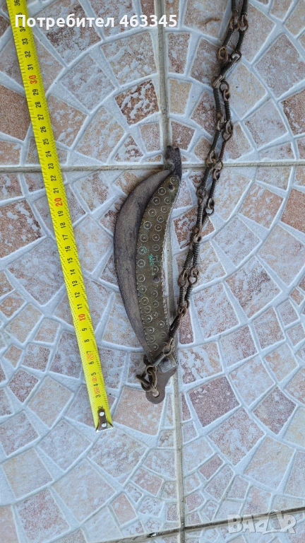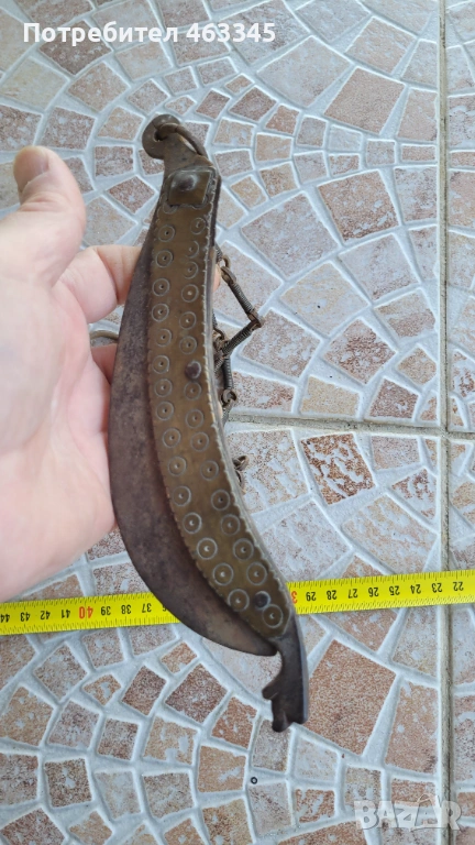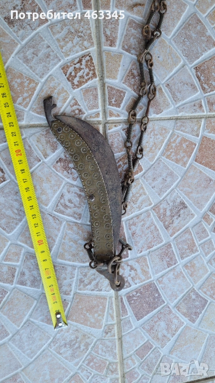 Османски сгъваем нож суя от края на 18-ти век. Невероятен предмет. Дръжката е изработена от бронз с интересна украса. Острието е стоманено, остро като бръснач. По него няма ръжда и язви. Ножът е прикрепен към верига с много интересна изработка. И да търсите втори такъв, няма да намерите!!!