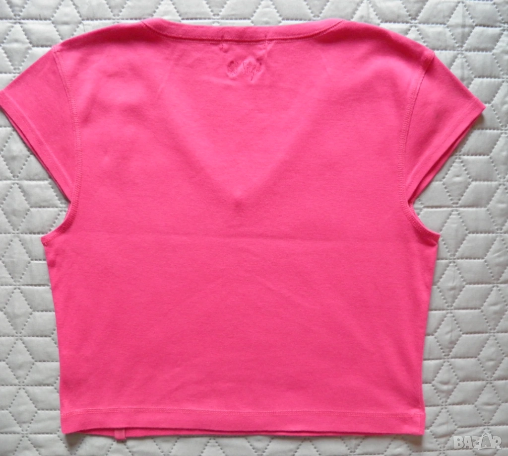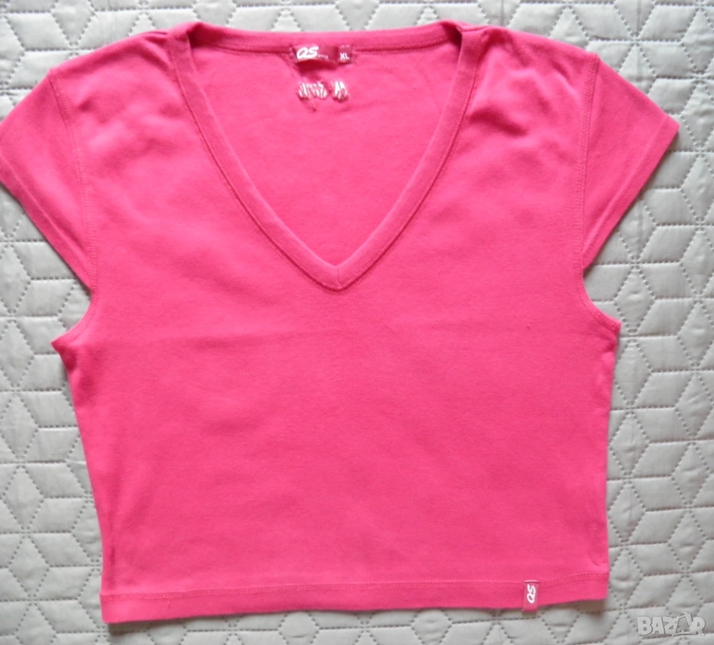 2. Дамска тениска. Размер XL: 44 см., дължина на ръкава 6 см., ширина на раменете 40 см., гръдна обиколка 88 см., обиколка на талията 80 см. В отлично състояние.