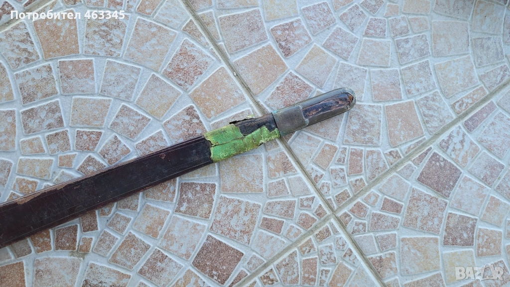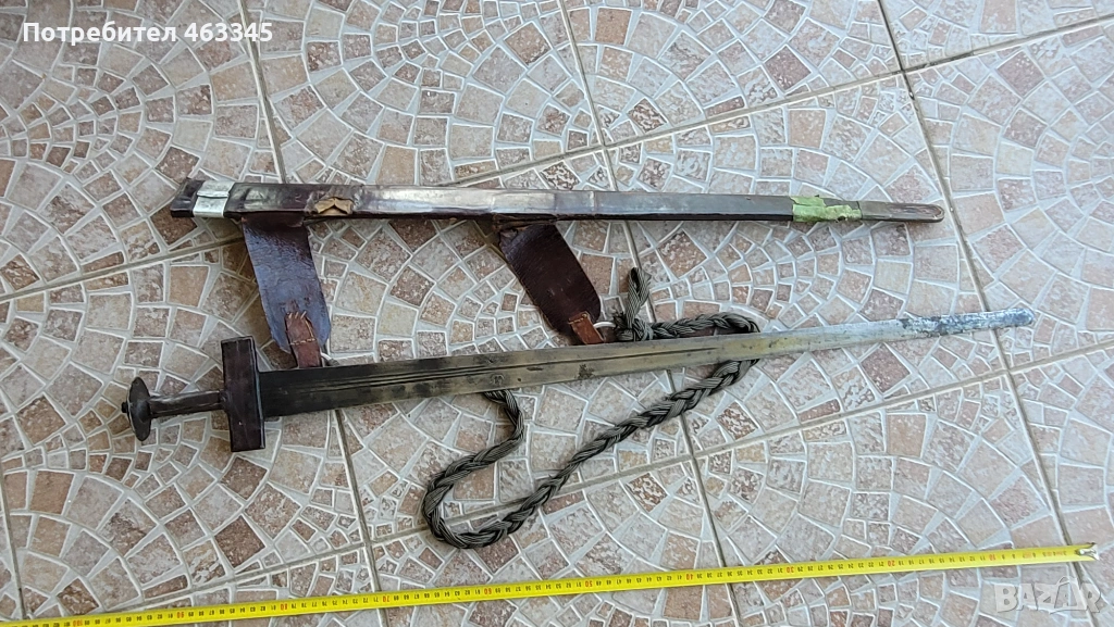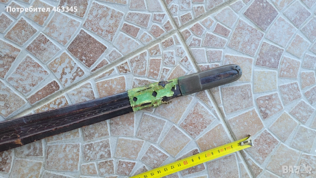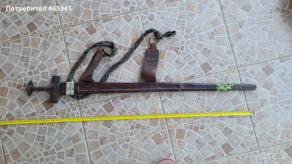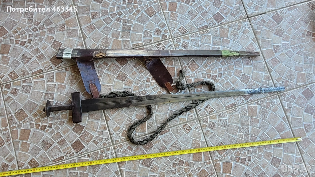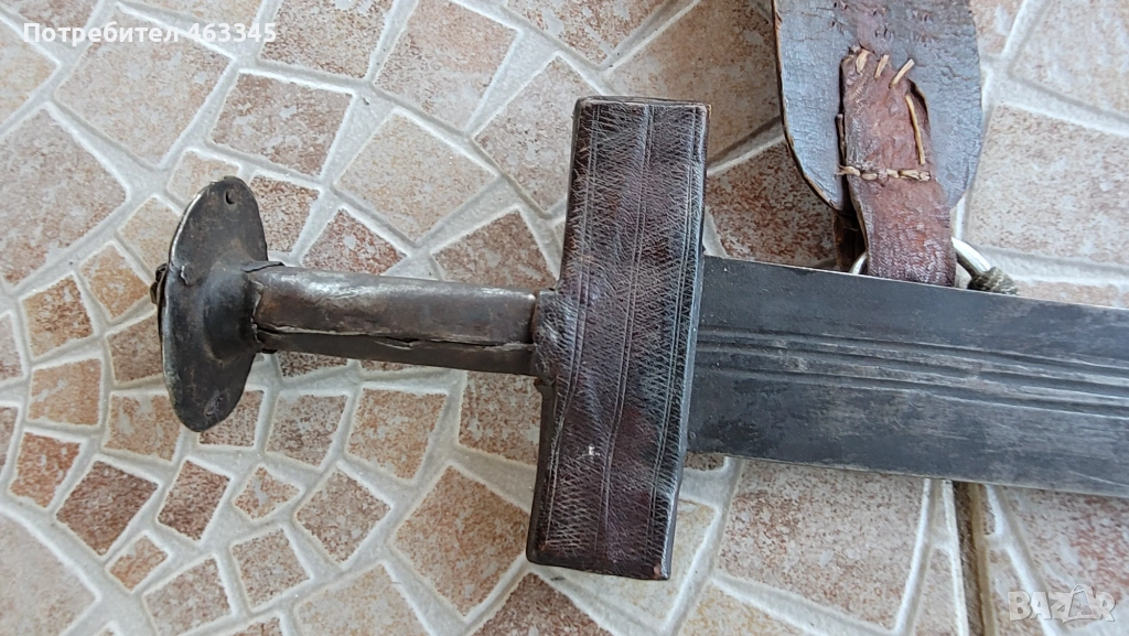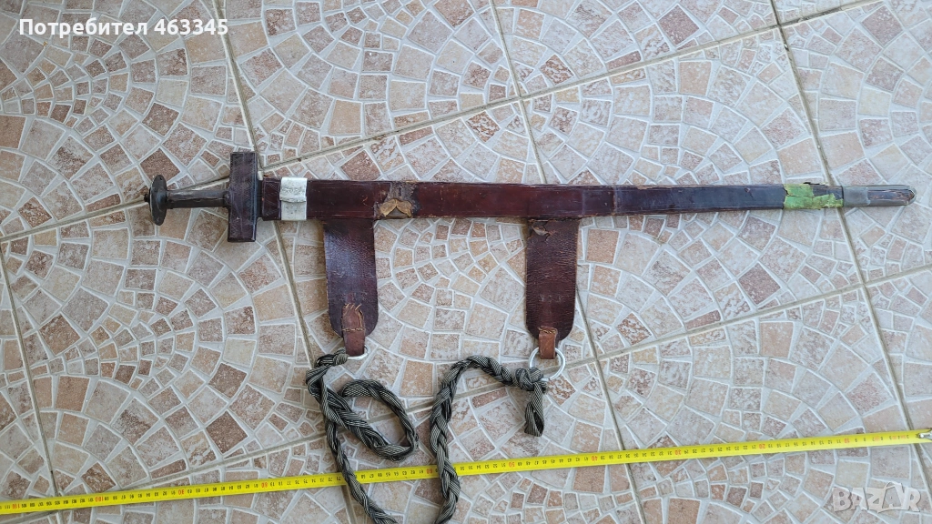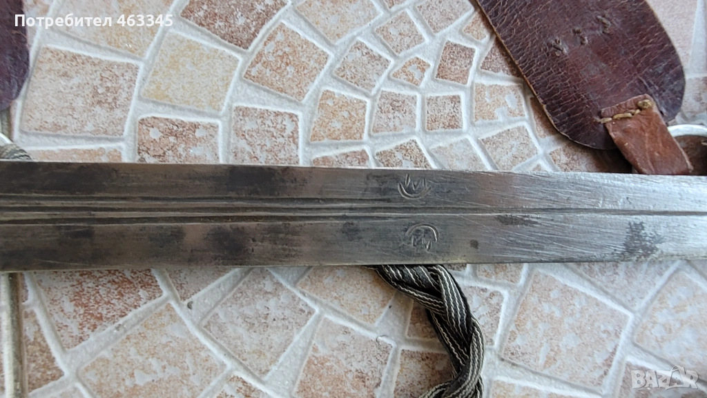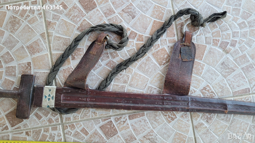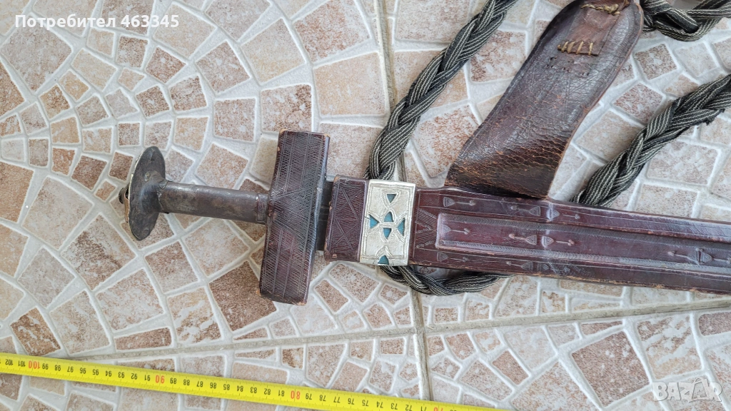 Още един туарегски меч "такуба". Мечът е в много добро за възрастта си състояние. Няколко петна повърхностна ръжда по острието. Последното носи майсторско клеймо и от двете страни. Непочистван. Ножната е кожена с типична за това оръжие конструкжия. Почти няма скъсано по кожата. Върви с импровизиран "портупей".