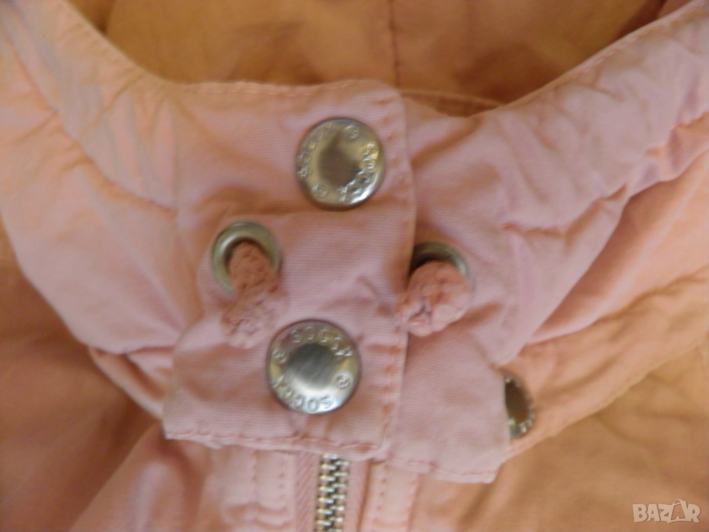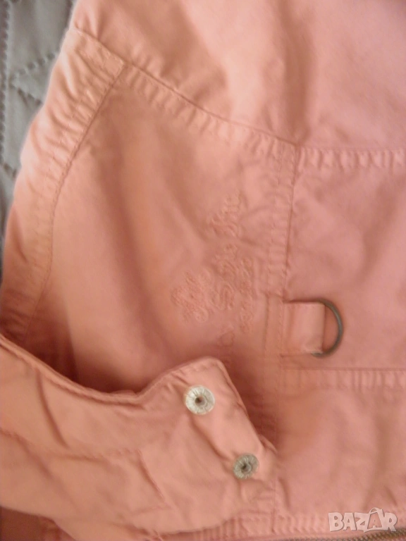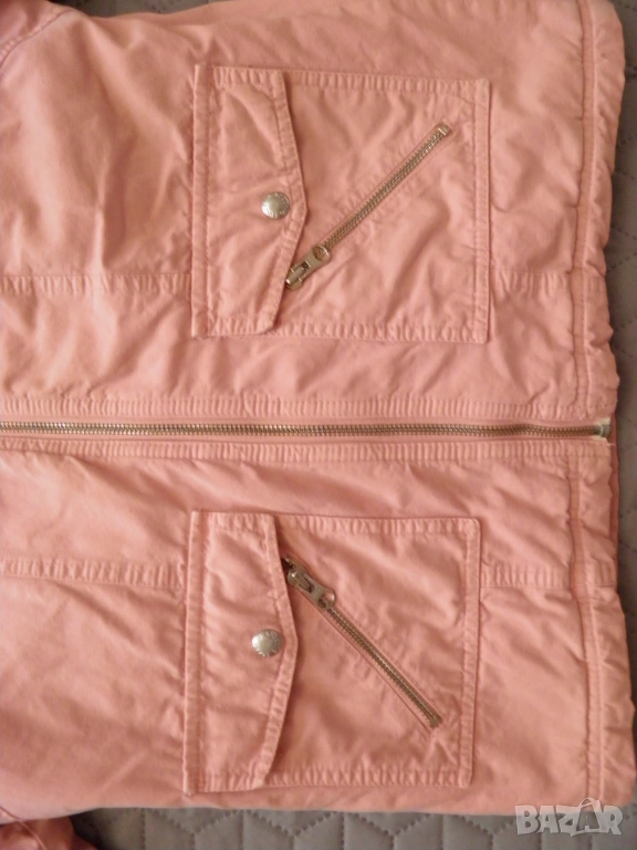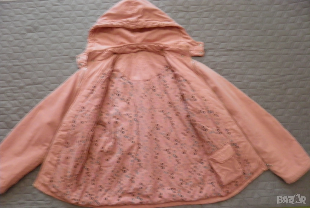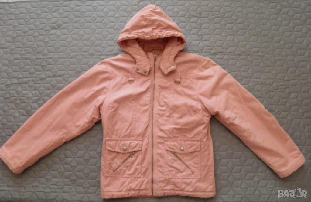 Дамско розово яке с качулка. Подходящо за сезони пролет-есен. Размер S/М: дължина 62 см., дължина на ръкава 59 см., ширина на раменете 44 см., гръдна обиколка 100 см., обиколка на талията 90 см. Обличано, в отлично състояние.