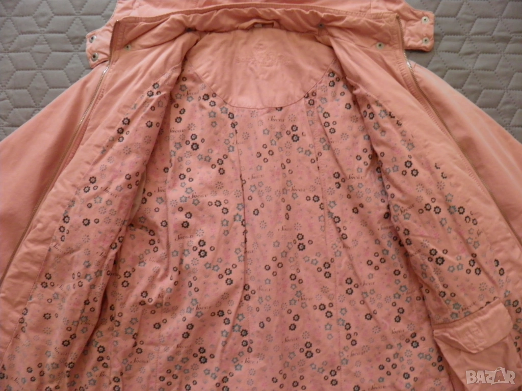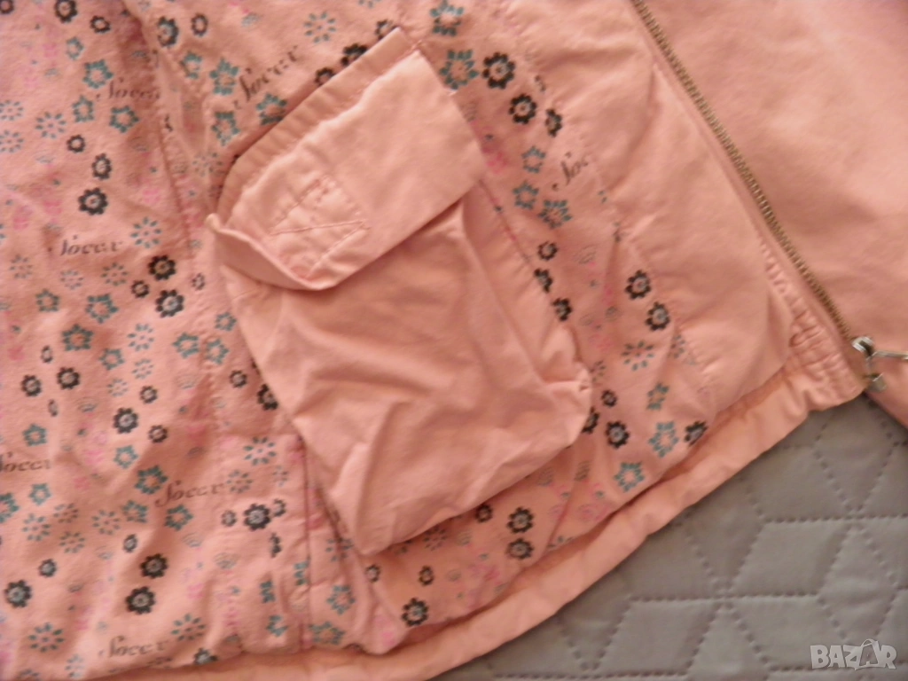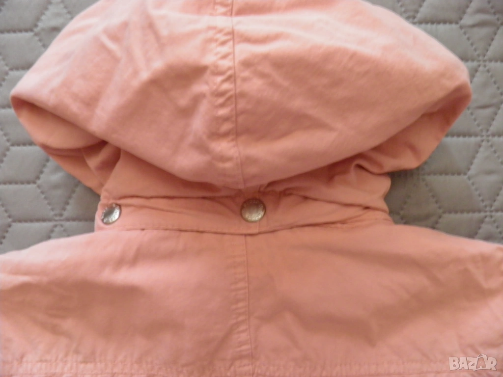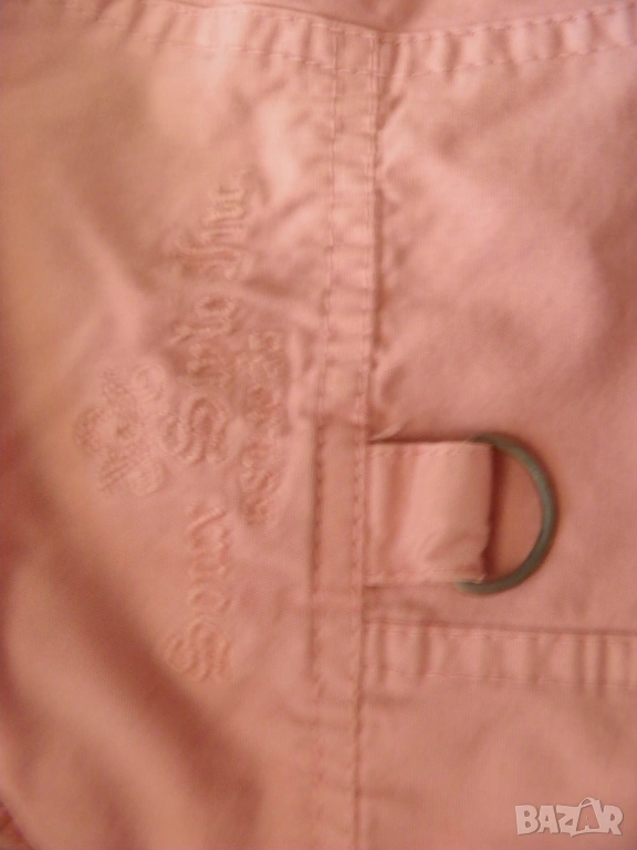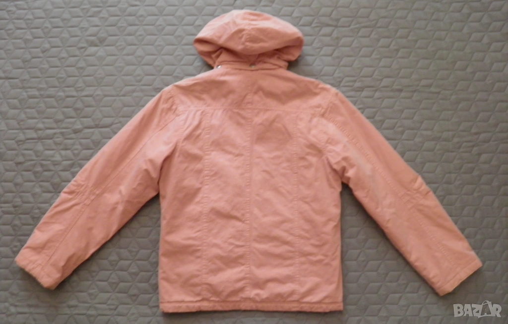 Дамско розово яке с качулка. Подходящо за сезони пролет-есен. Размер S/М: дължина 62 см., дължина на ръкава 59 см., ширина на раменете 44 см., гръдна обиколка 100 см., обиколка на талията 90 см. Обличано, в отлично състояние.