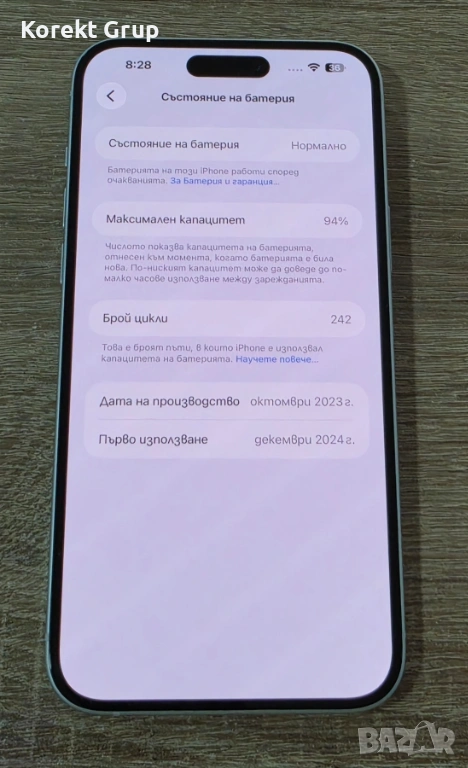Батерията е на 94%,цената е съобразена със състоянието на телефона.