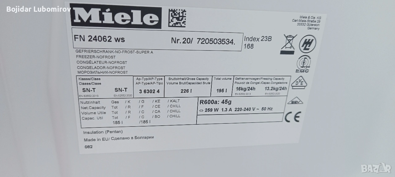 вертикален фризер Miele → Обява 54313413